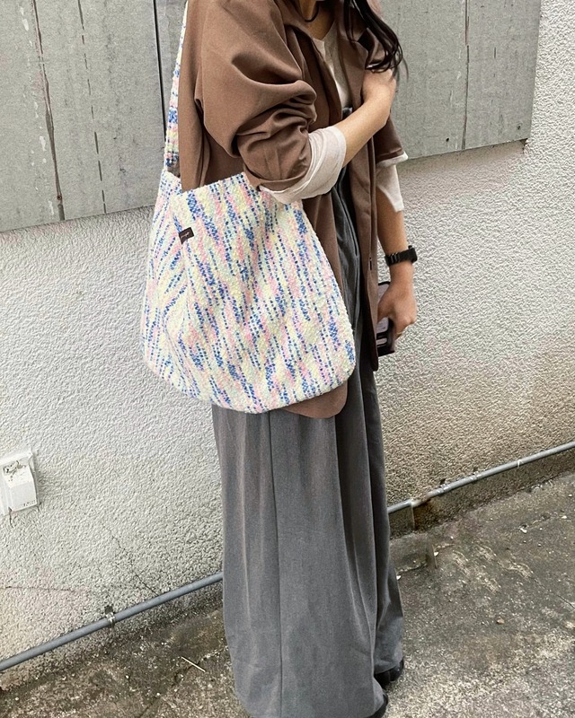 たっぷり荷物も入るミックス柄トートバッグ 雑誌やiPadも楽々収納。通勤や通学お出かけにもぴったり。 斜めがけとしても、肩掛けとしても使えるのでスタイルや用途に合わせてお使いいただけます 折り畳めるので、持ち運びもしやすく旅行用のサブバッグとして、マザーズバッグとして。実用性も兼ね備えたバッグです。 A4対応(22×31cm):〇 ipadmini対応(19.6×13.5×0.7cm):〇 長財布(10×20cm):〇 二つ折り財布:〇 ペットボトル横向き(500ml):〇 ペットボトル縦向き(500ml):〇 重さ:約267g 裏地:あり 内ポケット:あり ------------------------------------------------ サイズ:高さ 約39cm 上横幅約43cm 底横幅約39cm 持ち手約22cm 持ち手長さ約68cm(調節不可、取り外し不可) 素材:ポリエステル