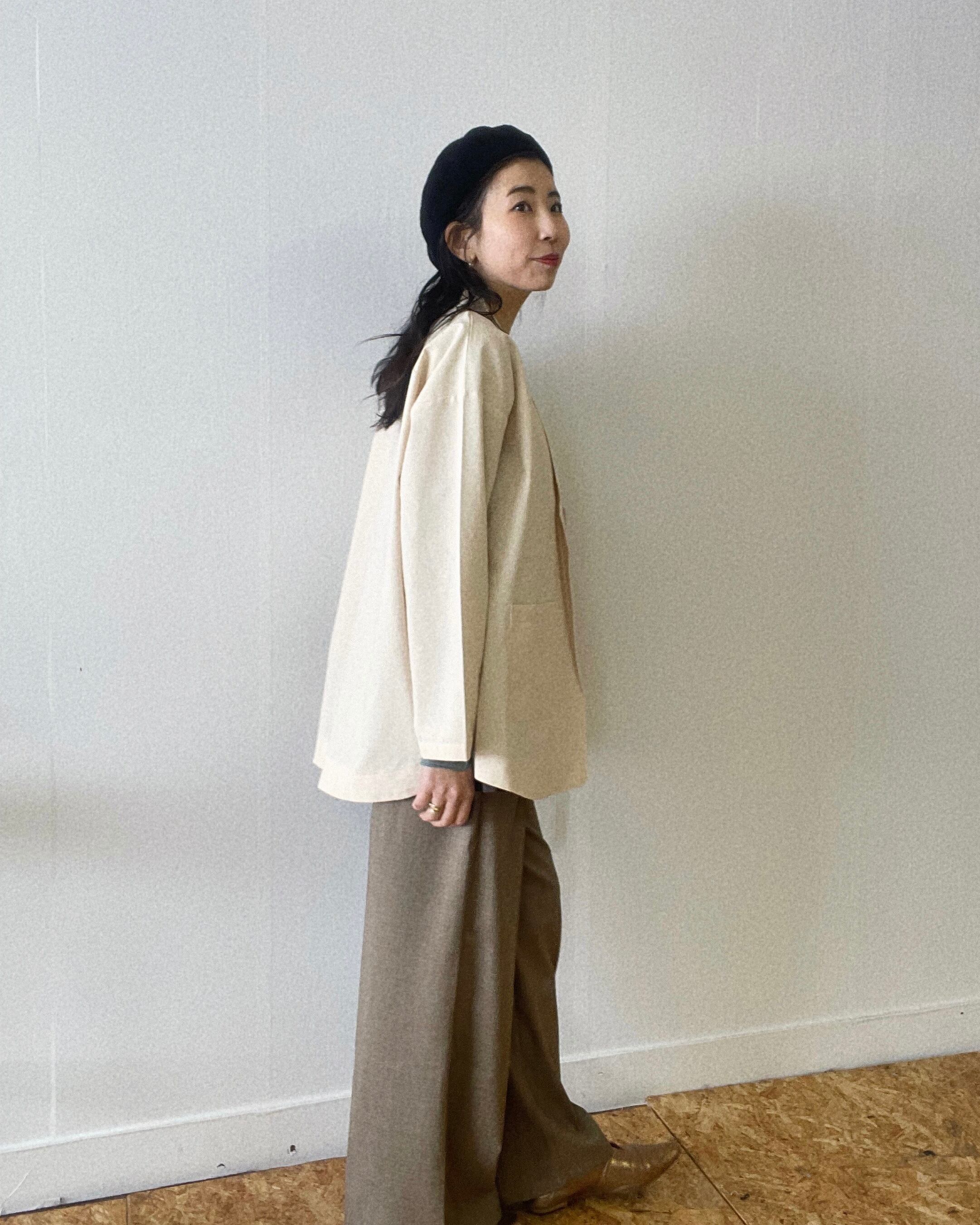 ゆったりとしたサイズ感に通気性の良い軽量な綿麻の生地でささっと羽織れる一枚