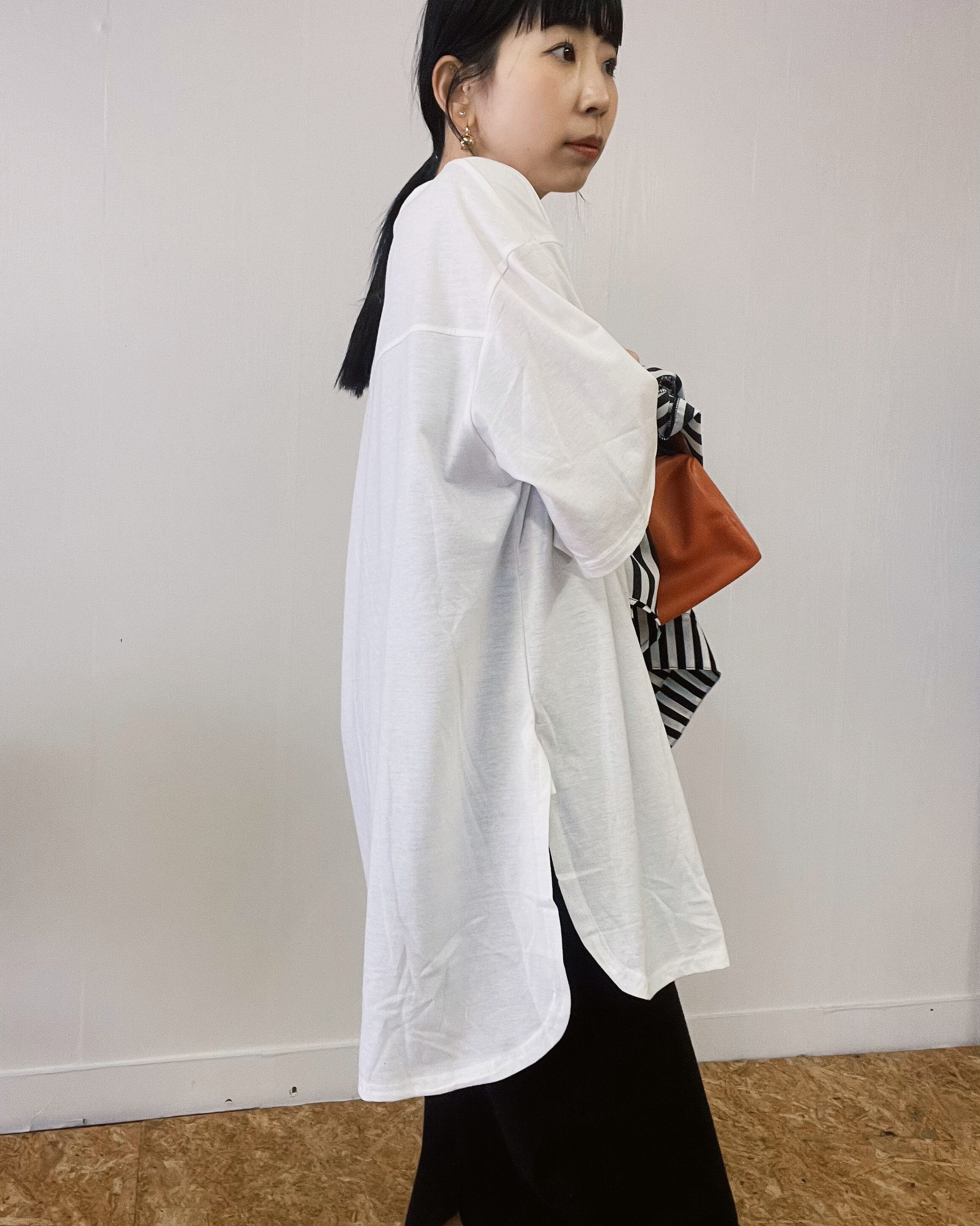 ヒップまでしっかりカバーしてくれるビッグシルエットで楽な着け心地。