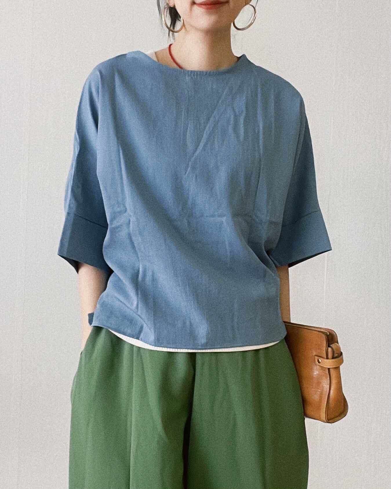ドルマンスリーブで二の腕をカバー。ゆったりした丈と、さらっとした風通しの良いやわらかな素材感でストレスフリーな着心地。