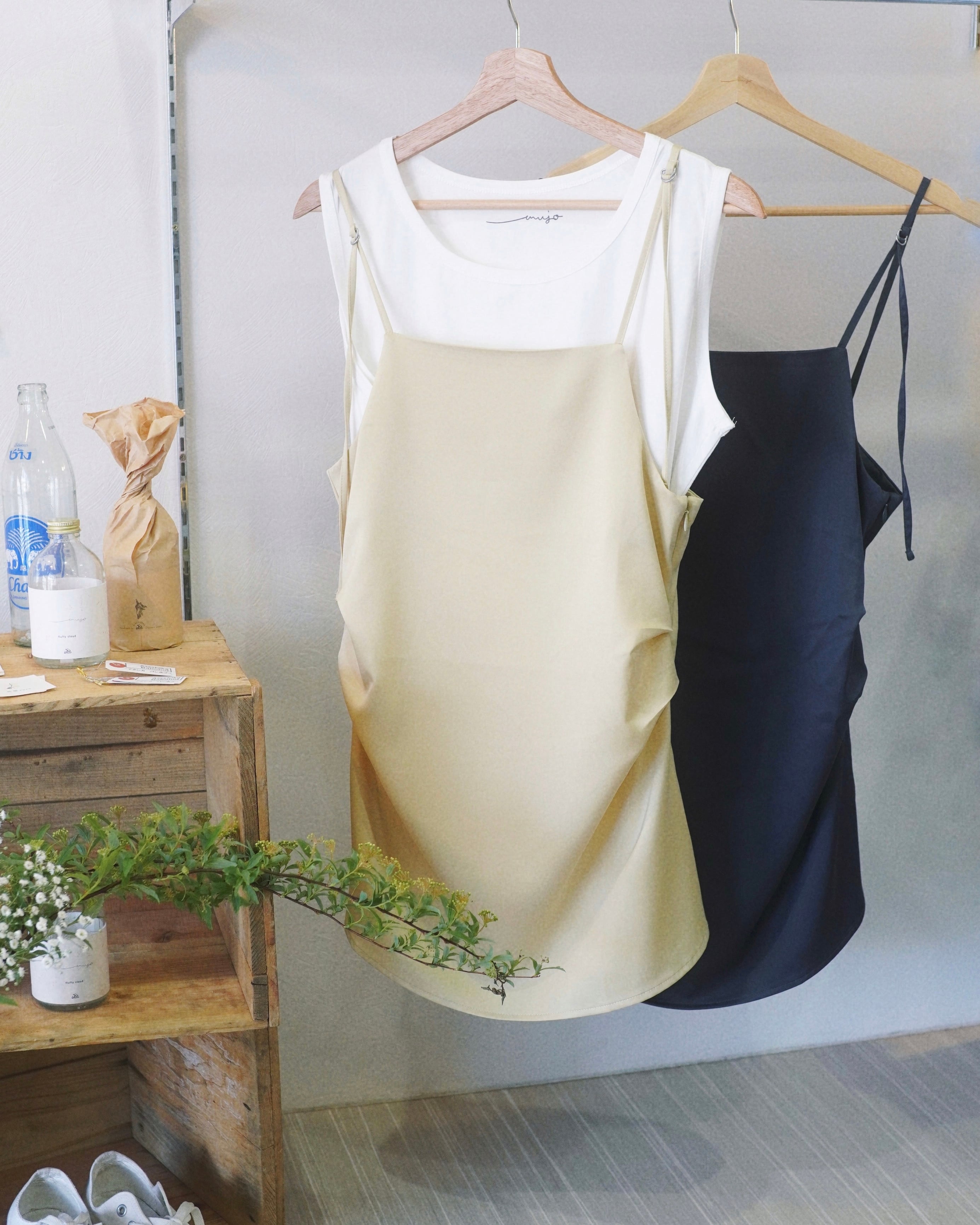 滑らかな素材感のマットサテンサイドタックキャミソール