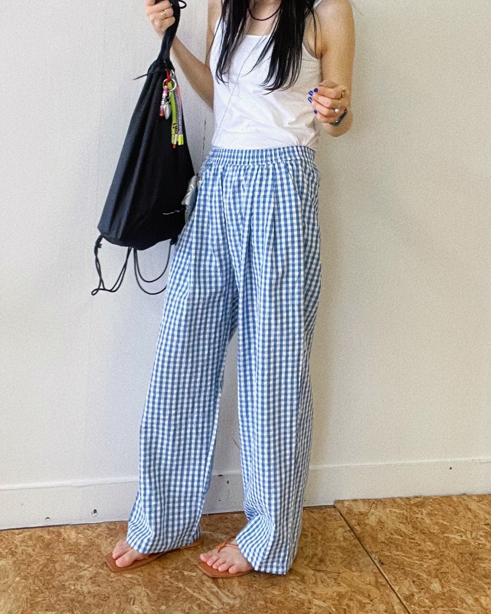 取り入れるだけでこなれた抜け感のあるカジュアルスタイリングが完成するギンガムチェックのラフパンツ