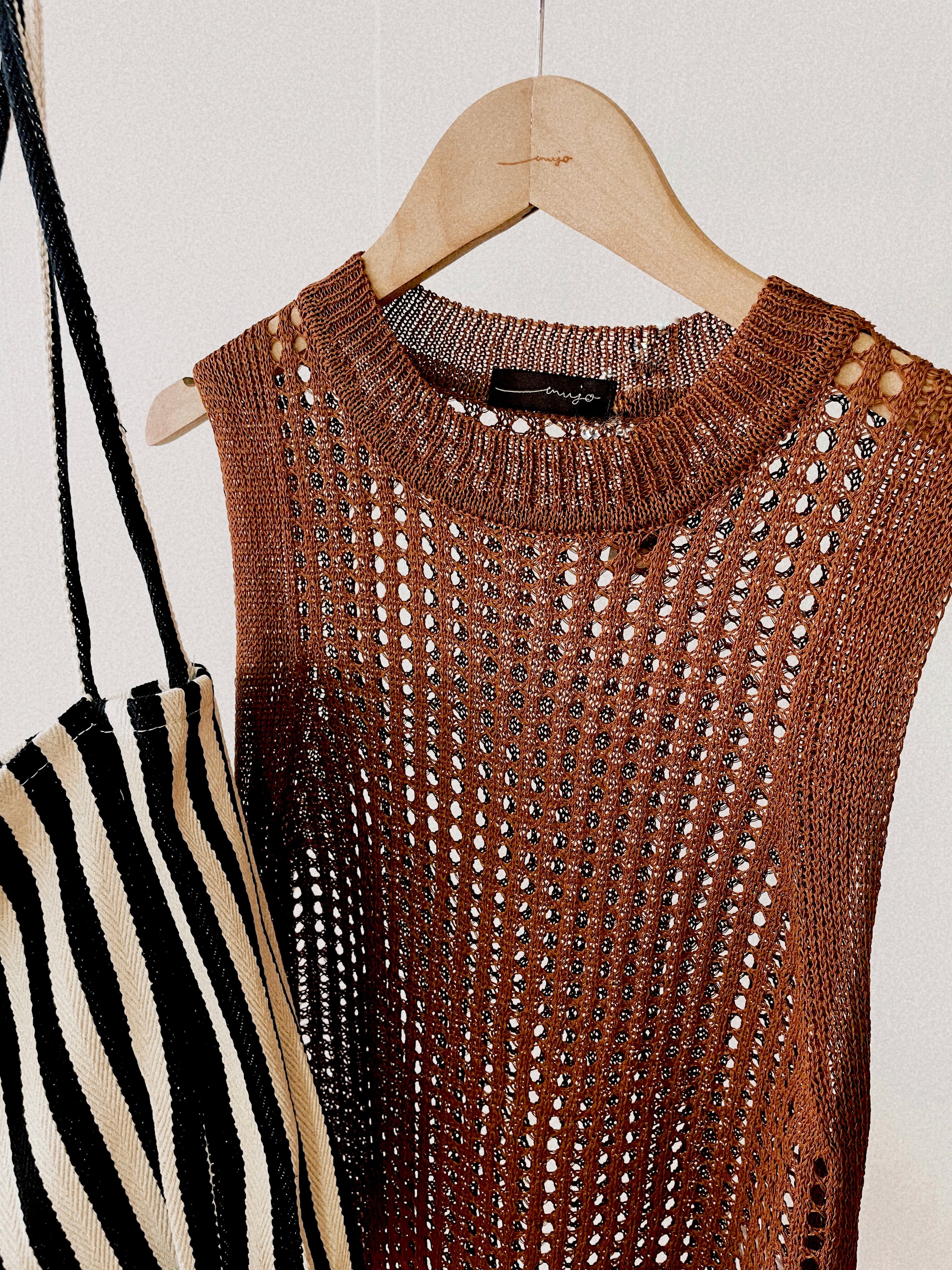 ざっくりとした透かし編みがコーディネートに抜け感を出してくれるロングニットワンピース