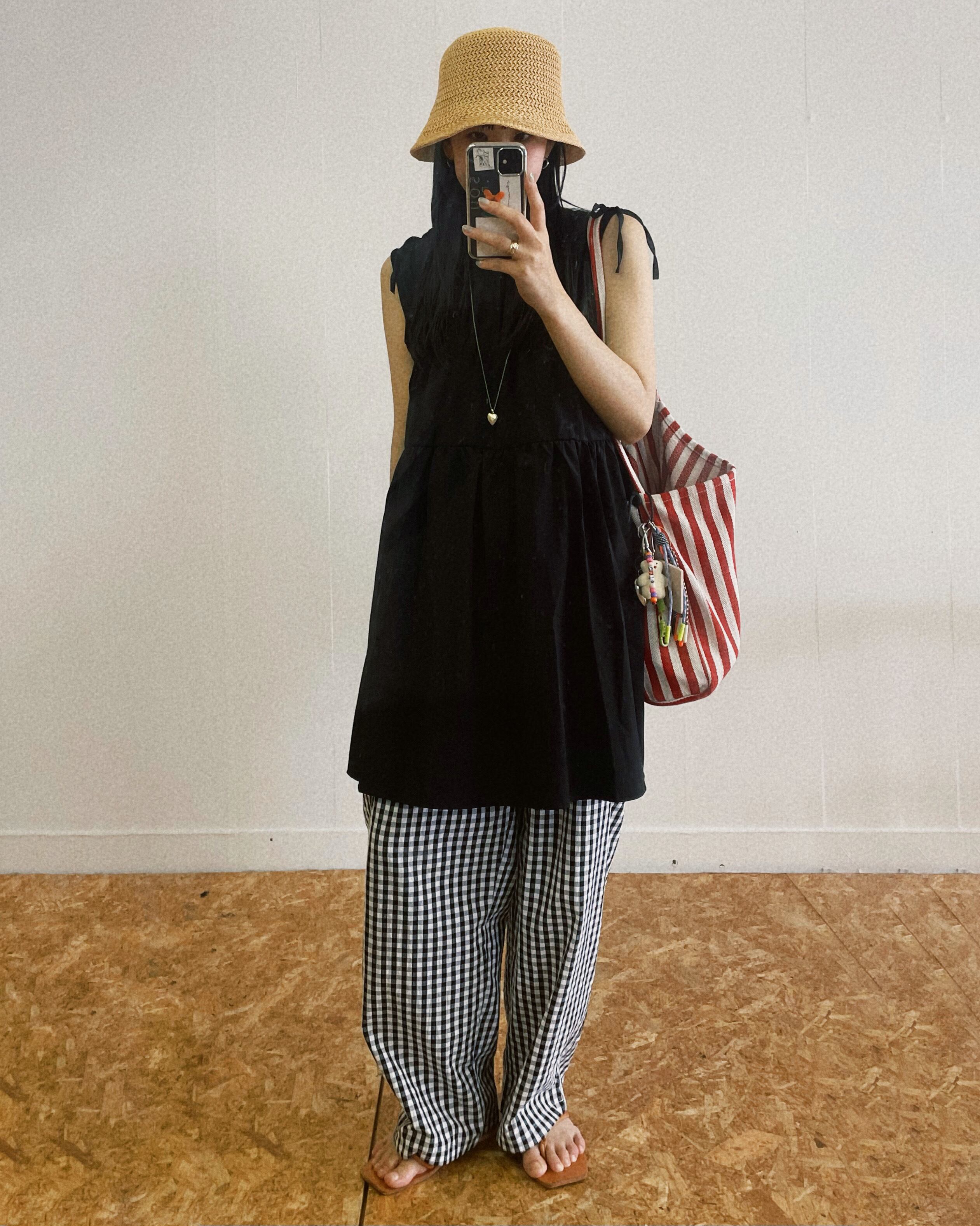 さらっとした肌触りに体のラインを拾わずに着れるサイズ感でストレスフリーな着心地です。