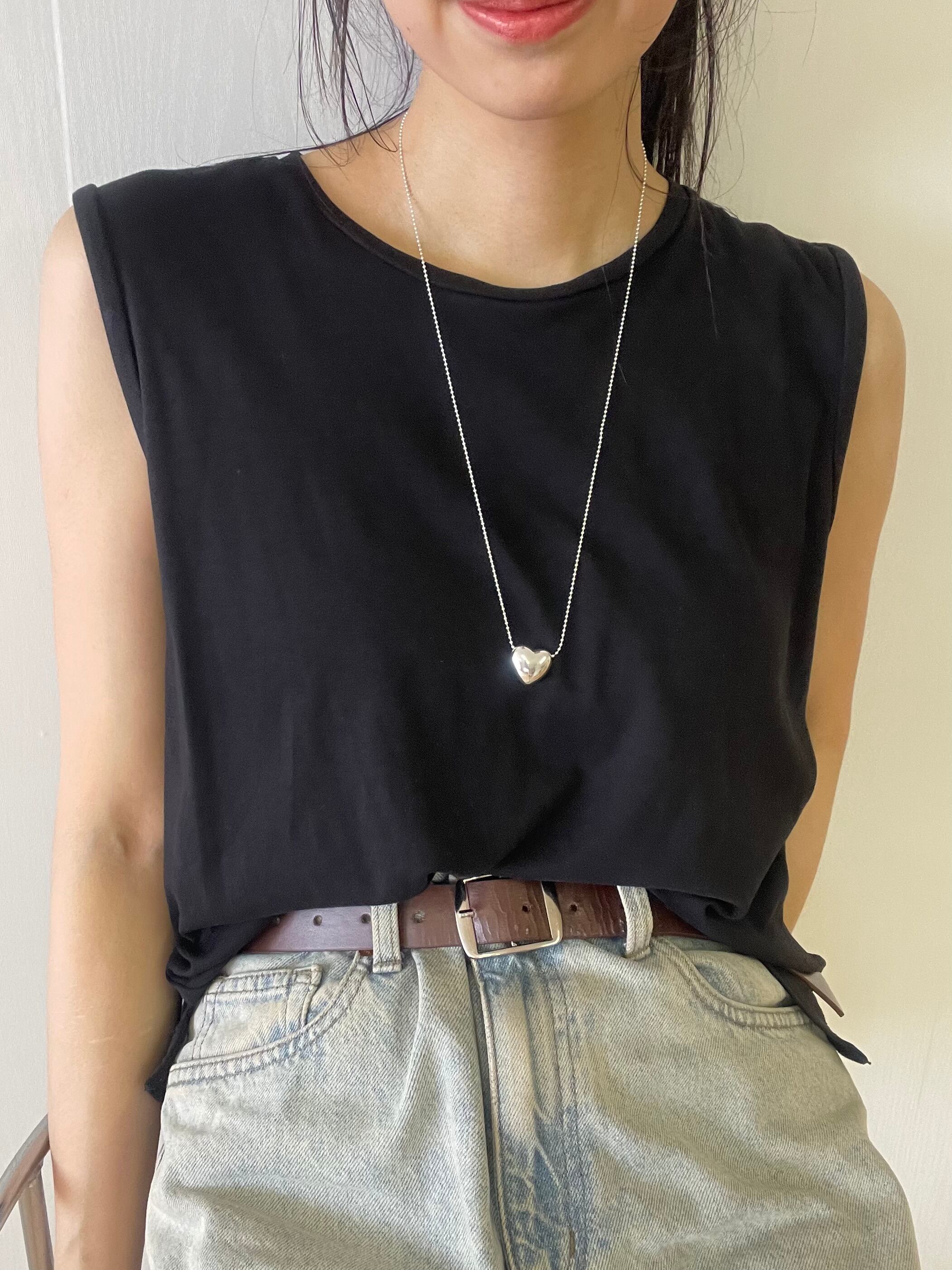 ころんとまるみのある立体的なハートモチーフのロングネックレス(長さ調整可能)