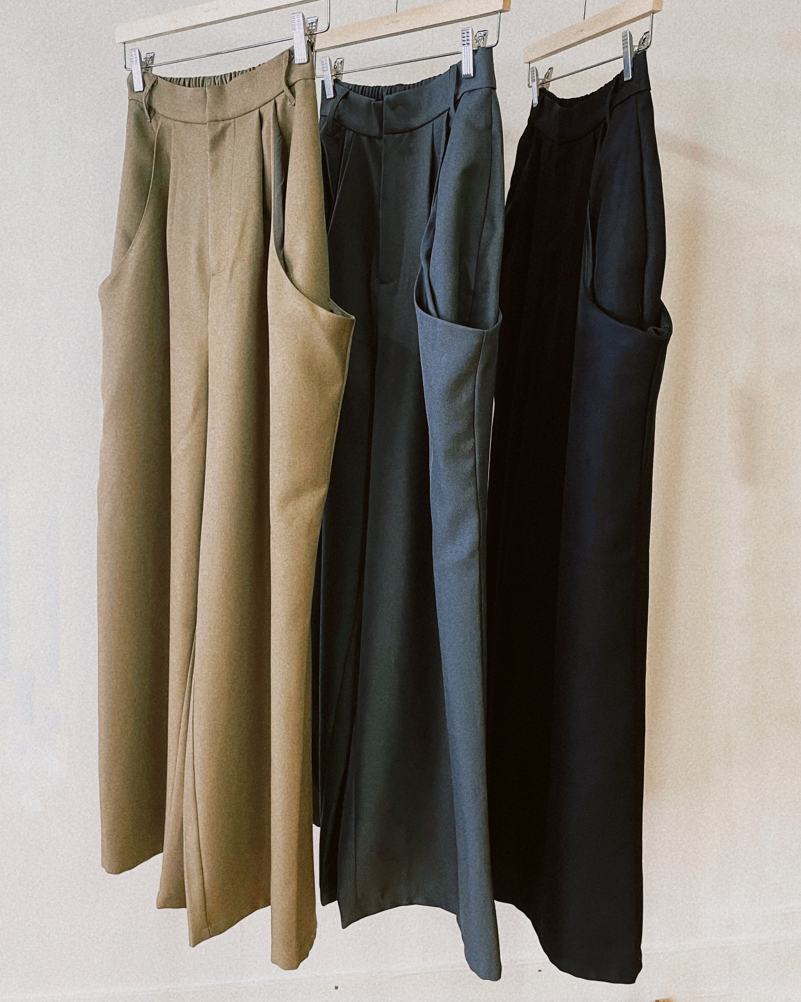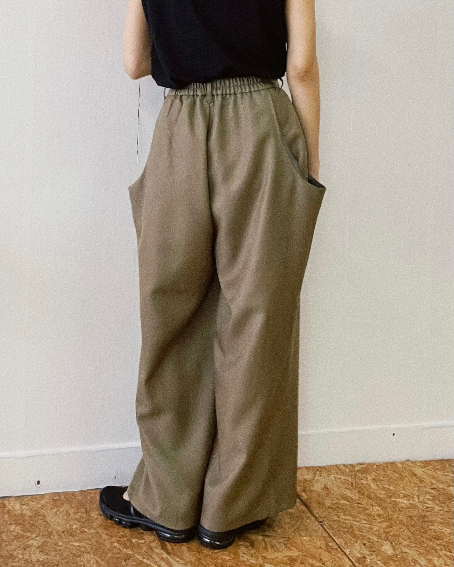 大きめのサイドポケットがデザインポイントのドレープワイドパンツ