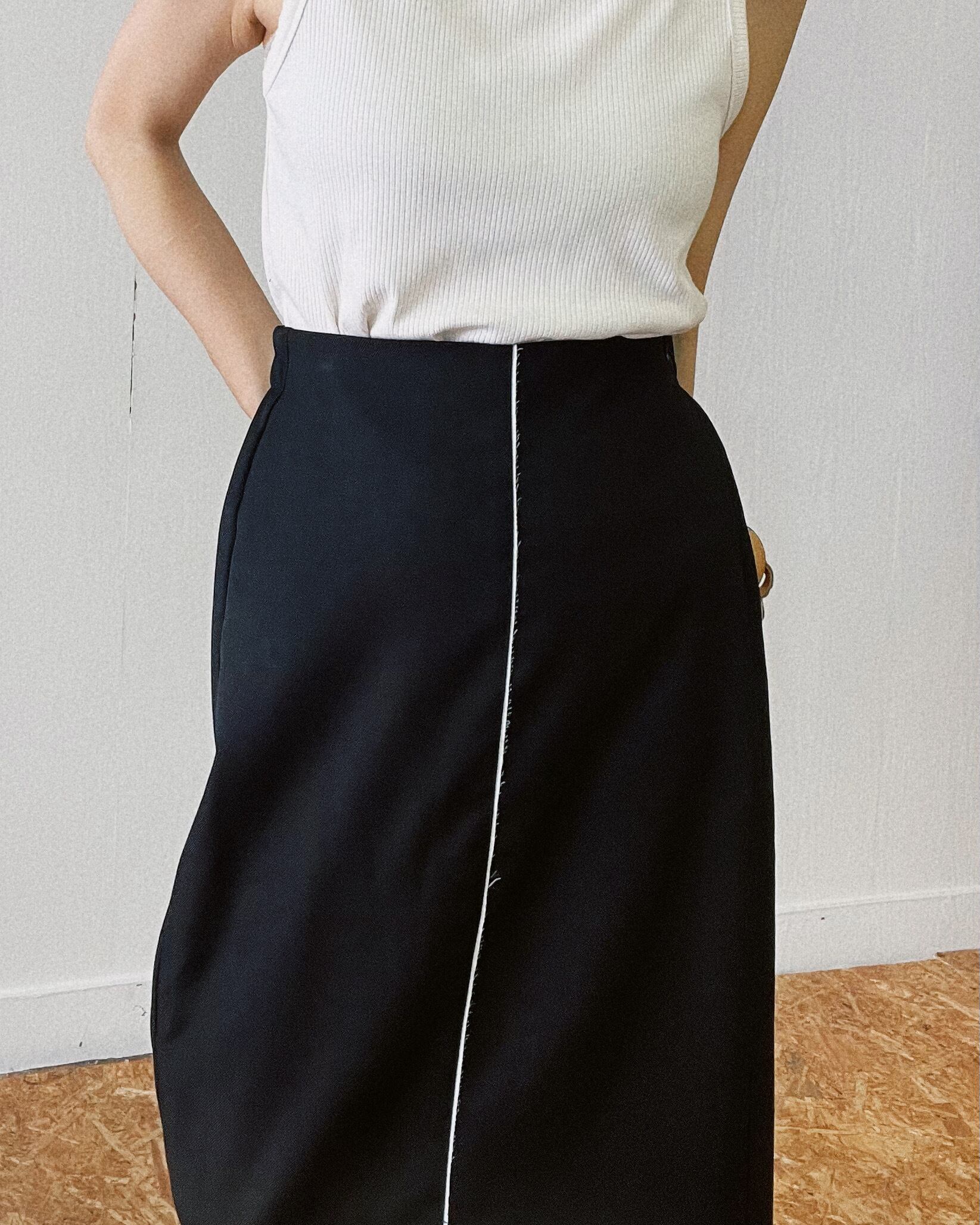 カットオフデザインで崩しこなれ感をプラスしたロングスカート