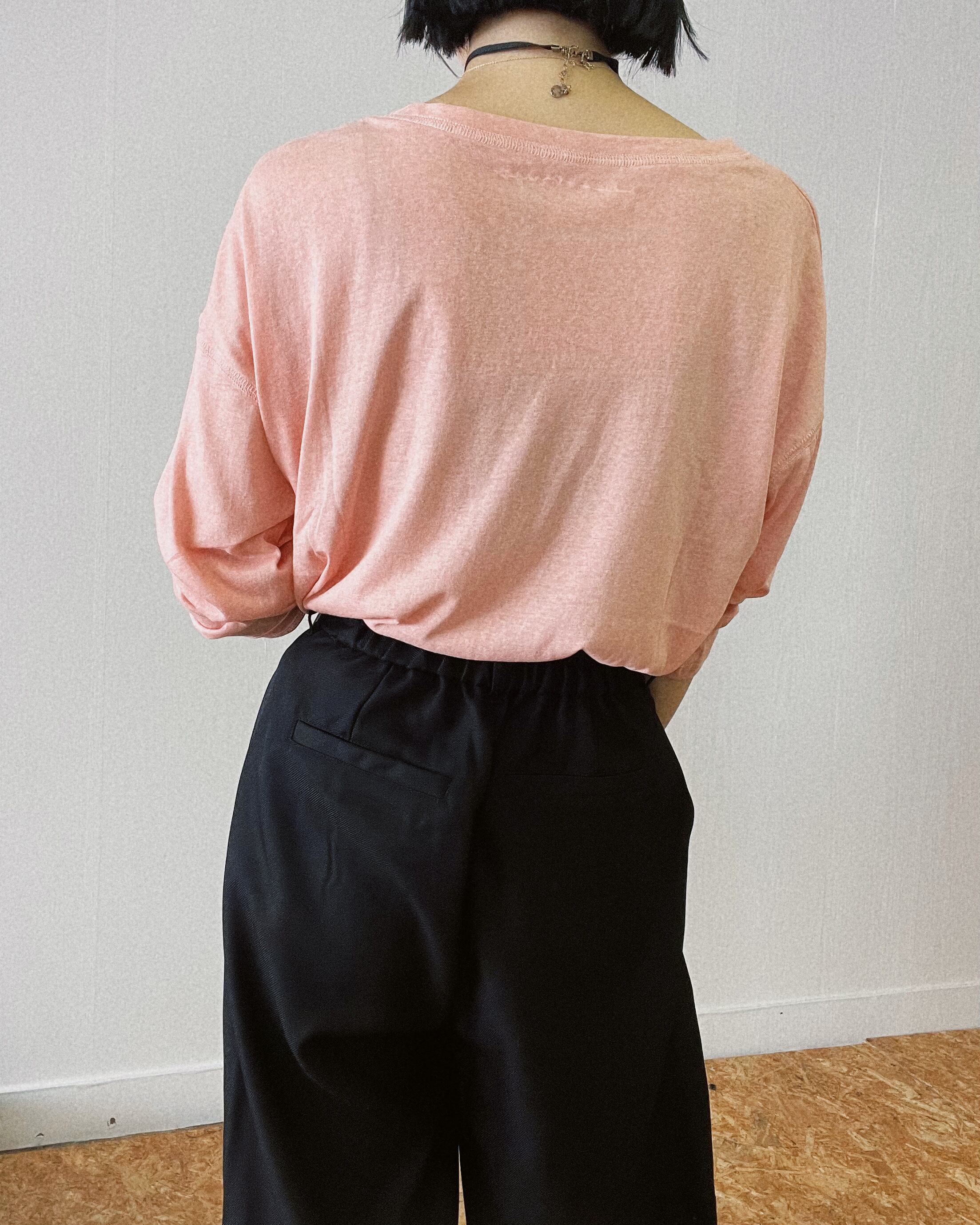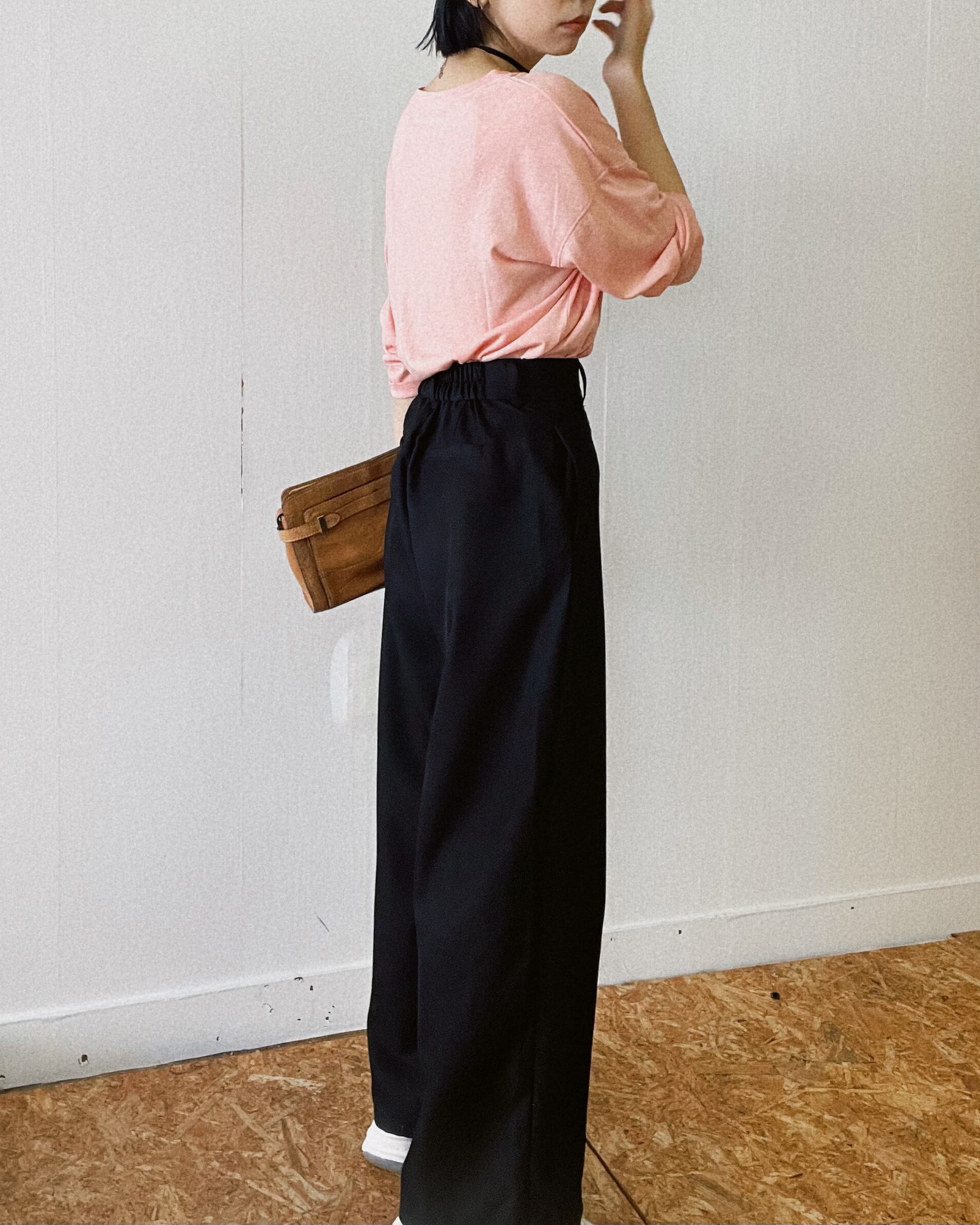 バックはゴム仕様でフロントは、トップスをインしてもスッキリとみせてくれる仕様に。
