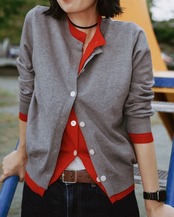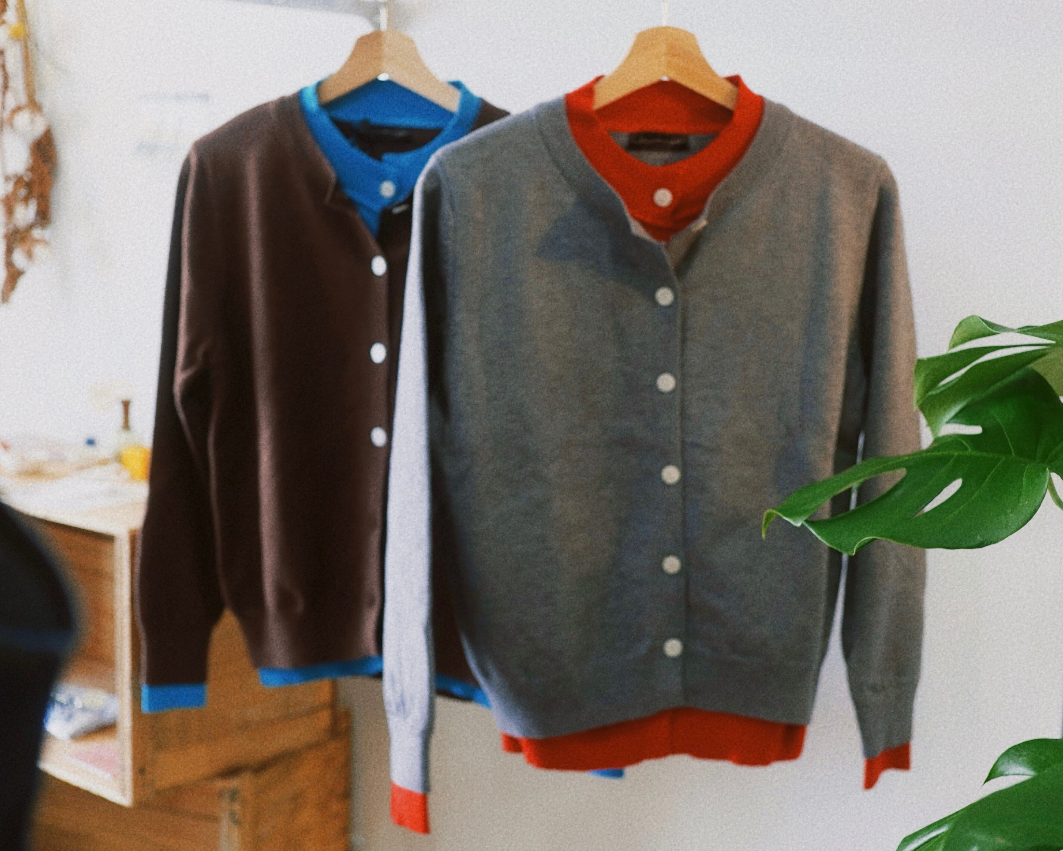 バイカラーのレイヤードカーディガン