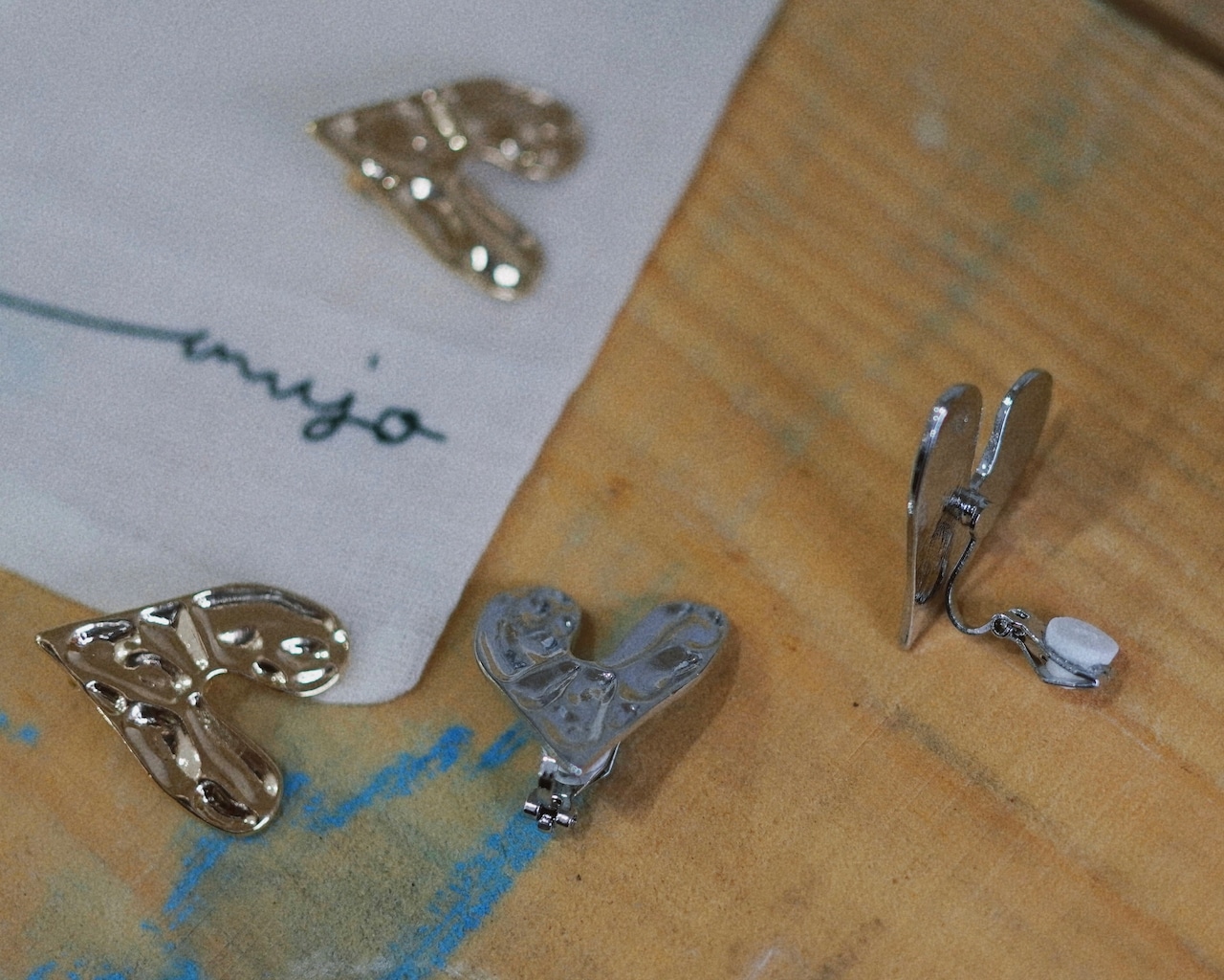 凹凸のあるハートモチーフクリップ(イヤリング)