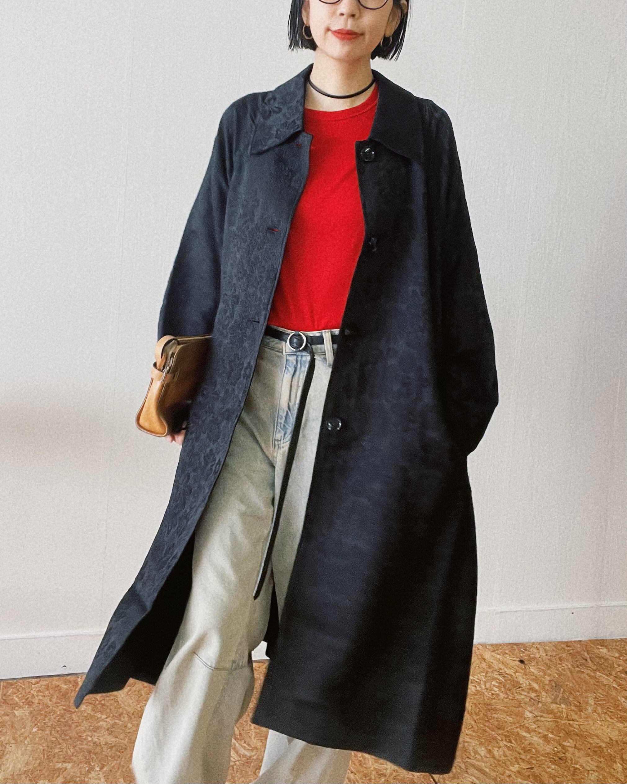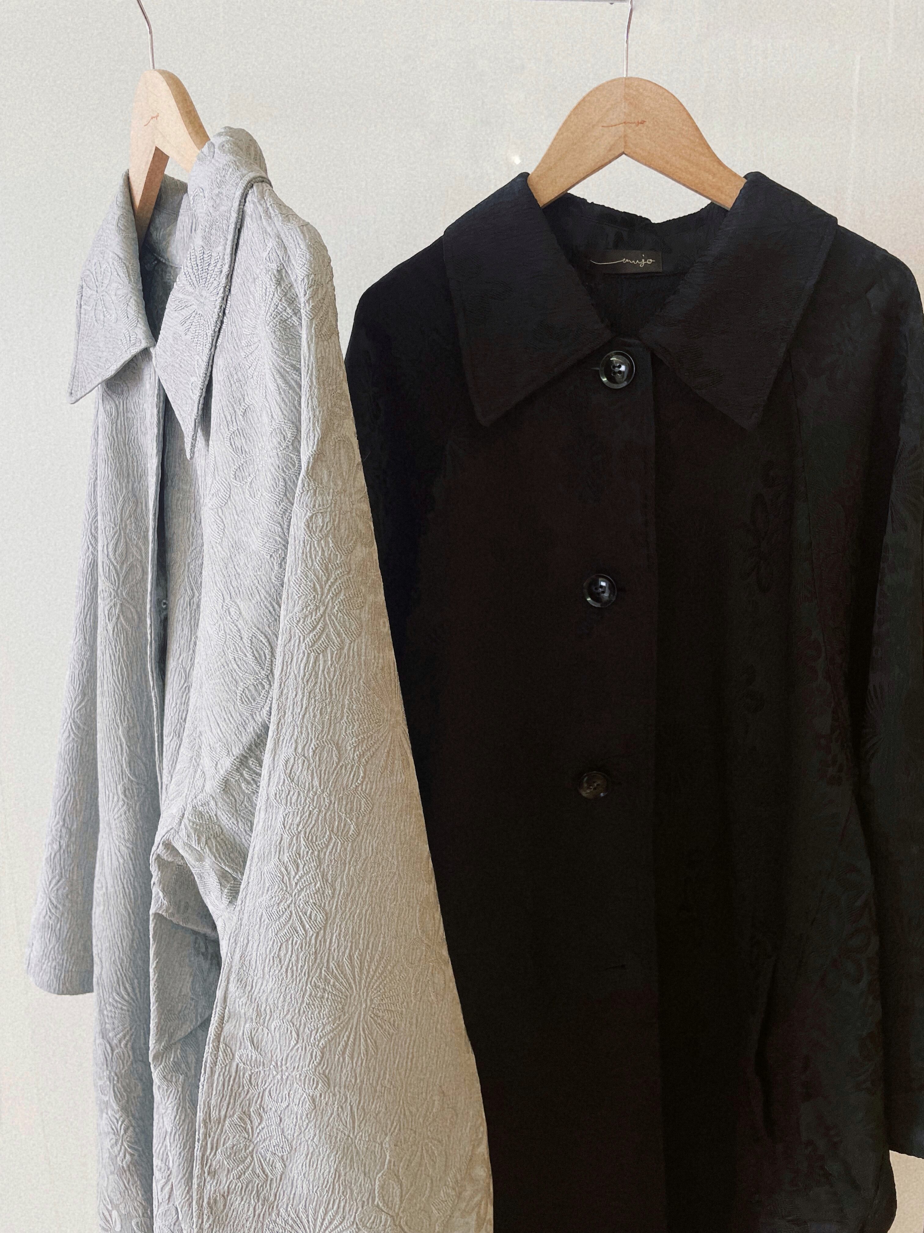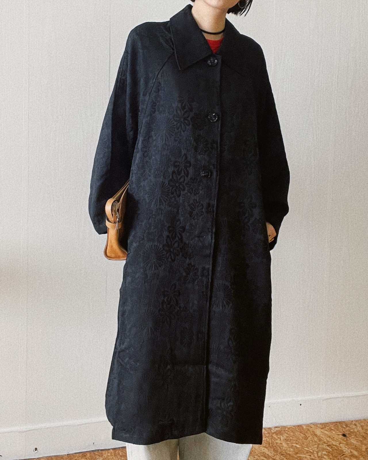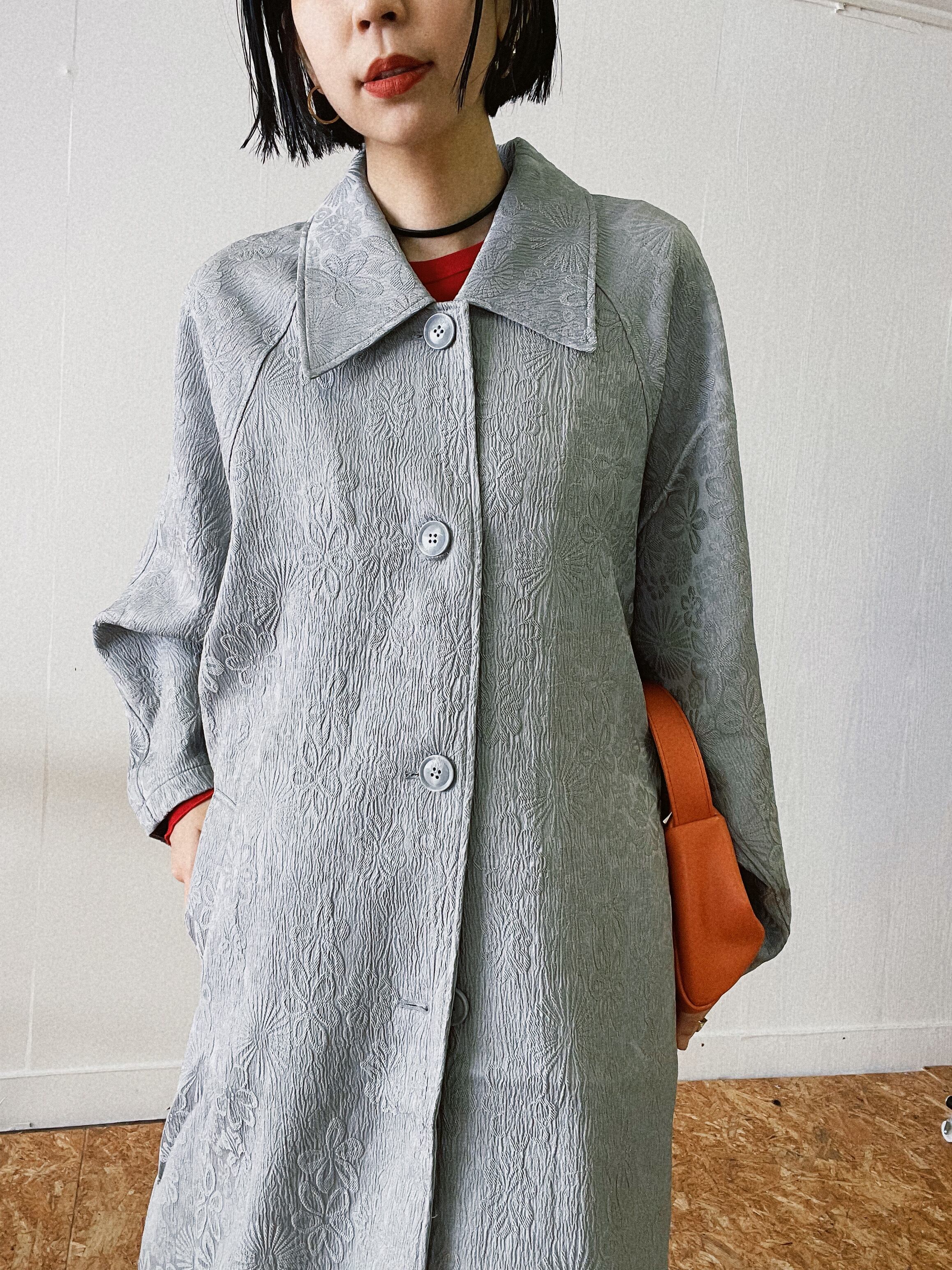 繊細なフラワーパターンをジャカード織りで表現した上品な雰囲気のステンカラーコート