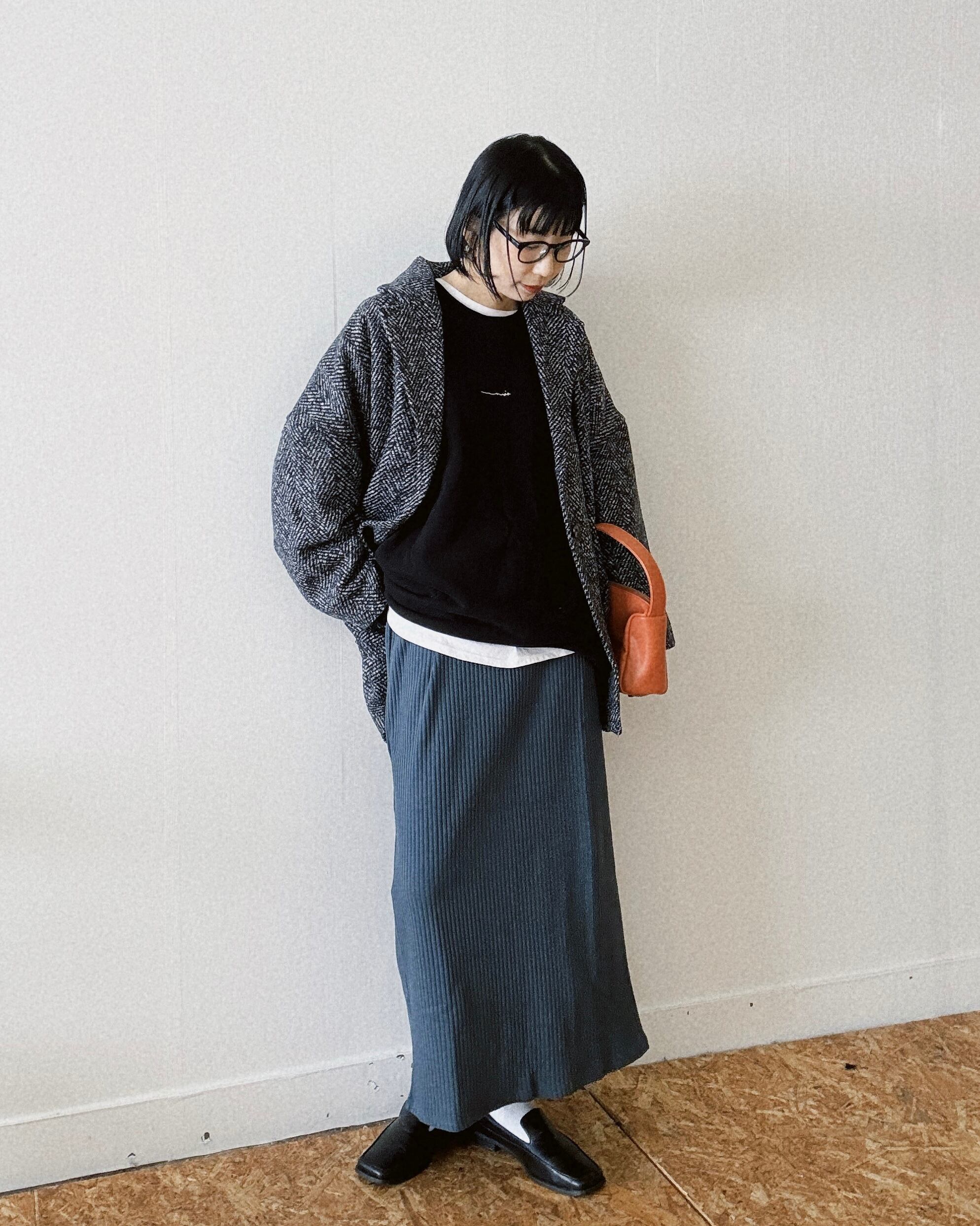 リラックス感がありながらもテーラードカラーがすっきりと上品な印象にコーディネートが仕上がります。