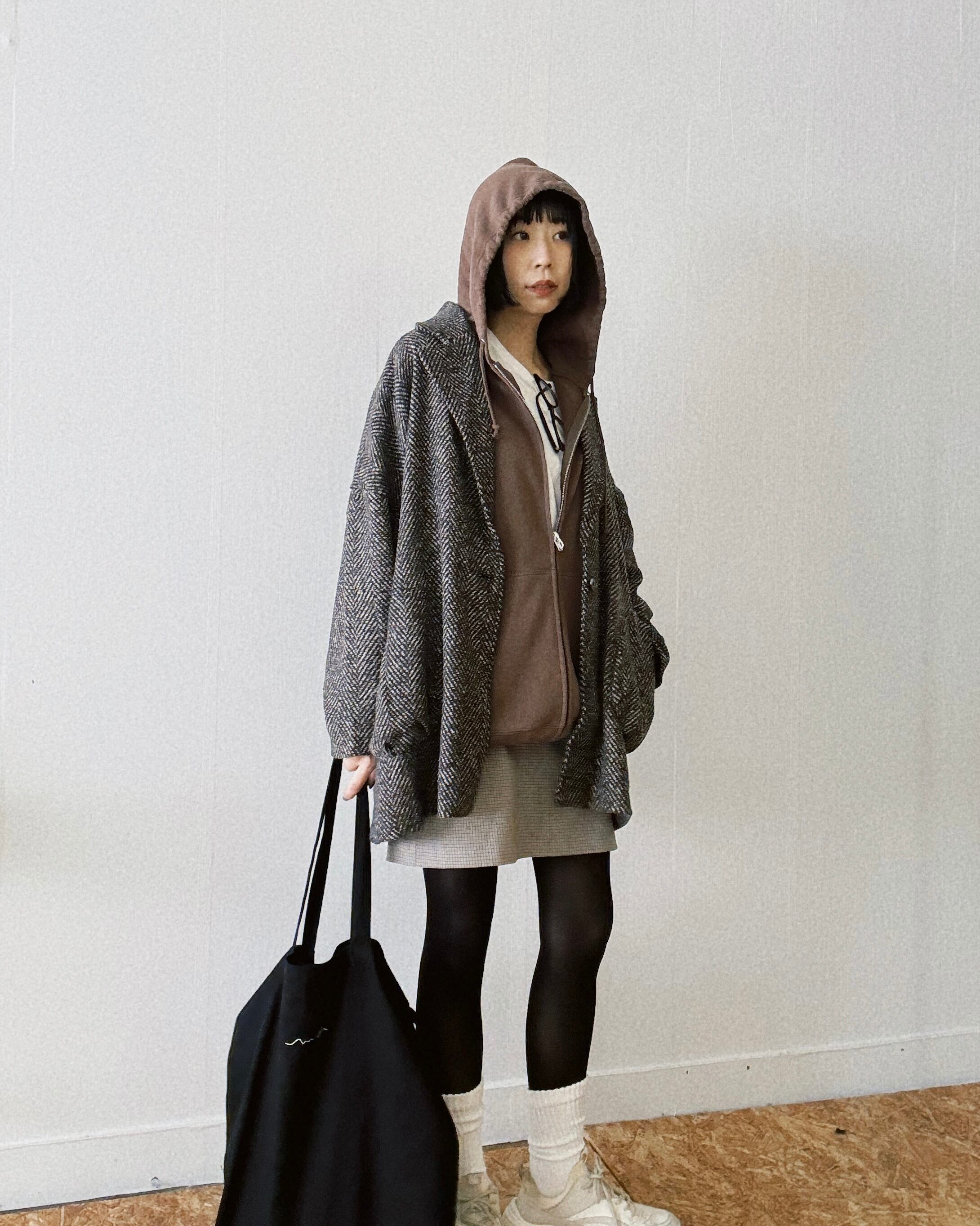 肩を落としたドロップショルダーにゆったり身幅をもたせたオーバーサイズ設計。