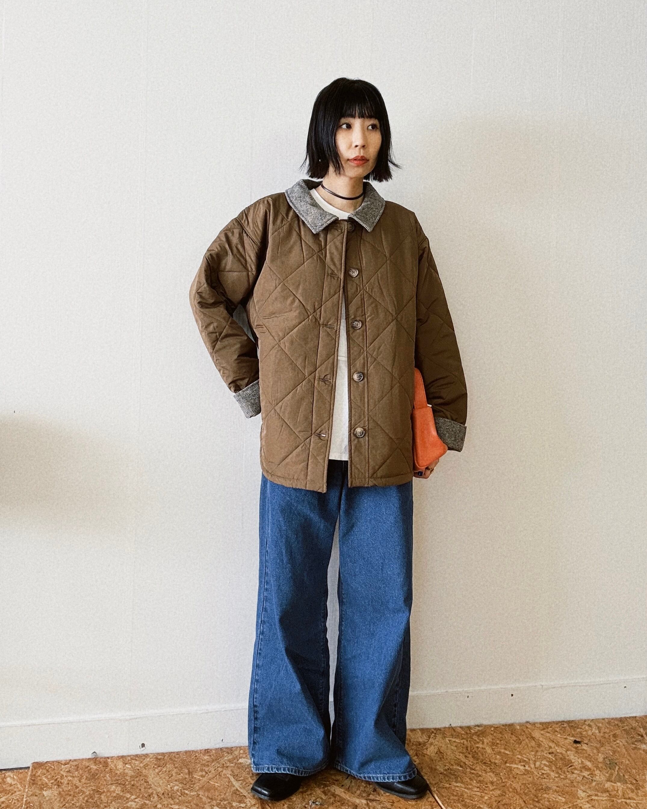 軽量の薄中綿ダイヤキルトに、袖口と襟元のクラシックなヘリンボーン柄がカジュアルさを上品に引き締めてくれます。