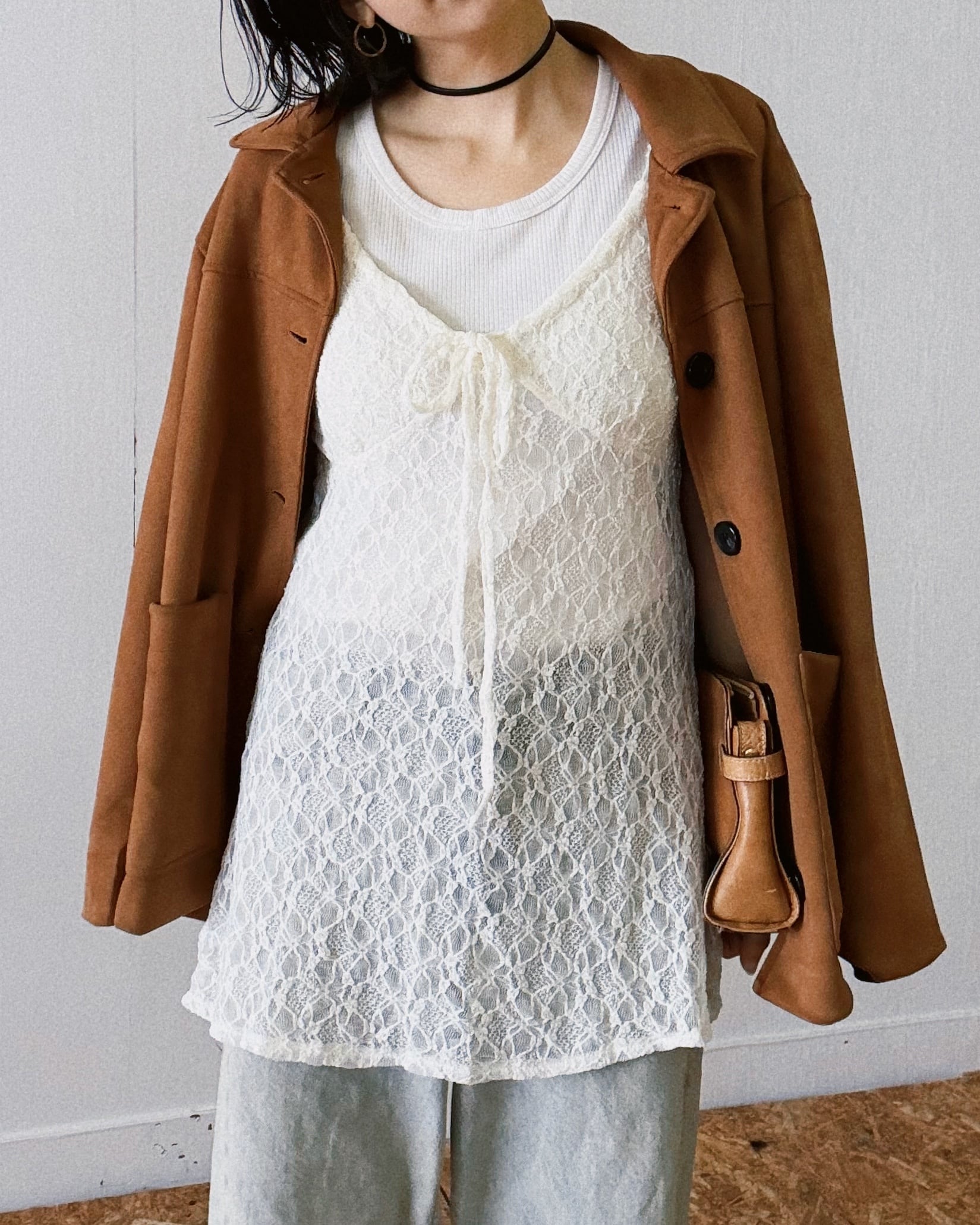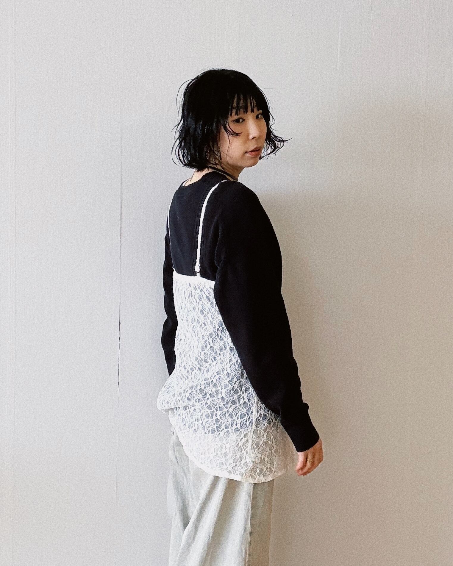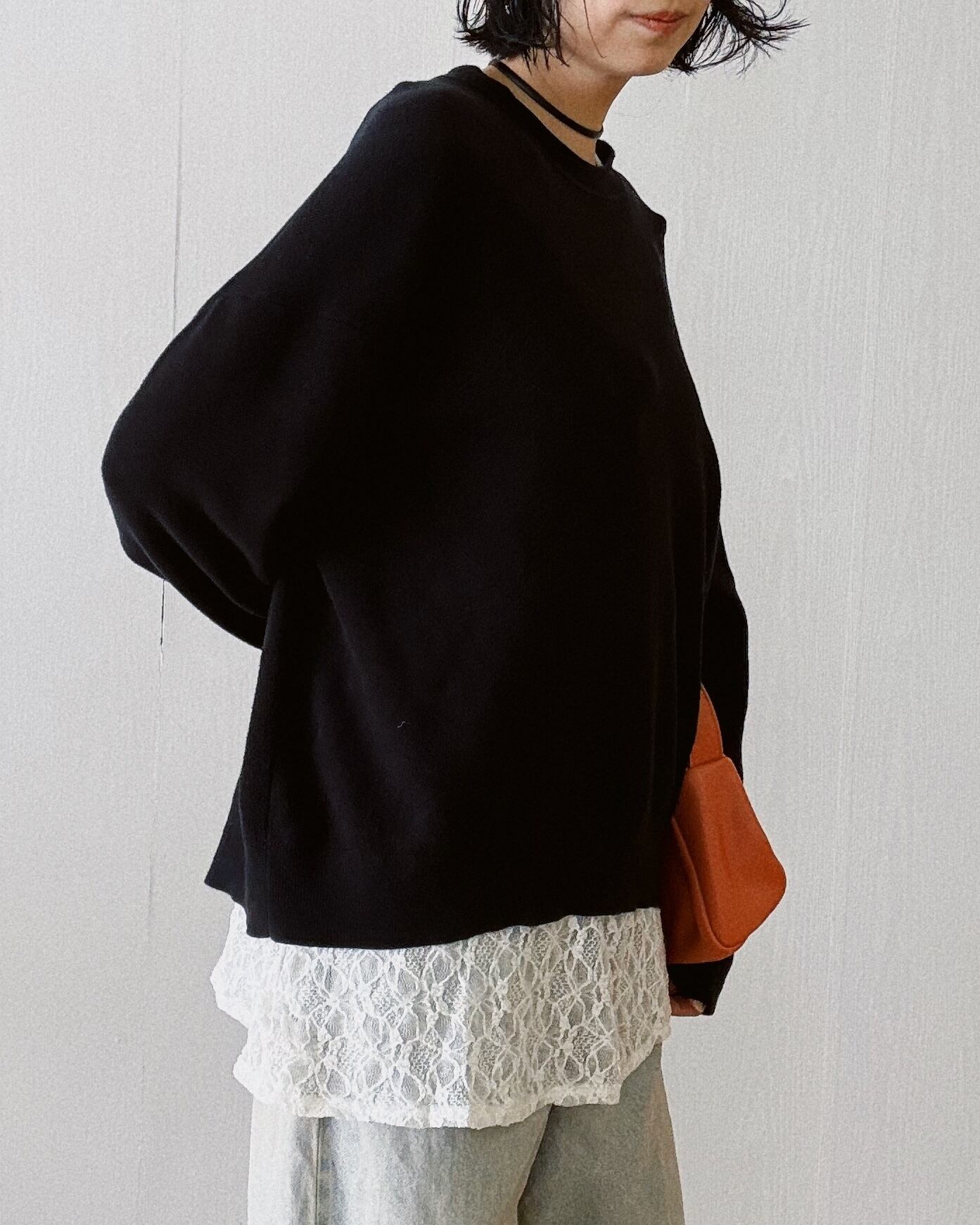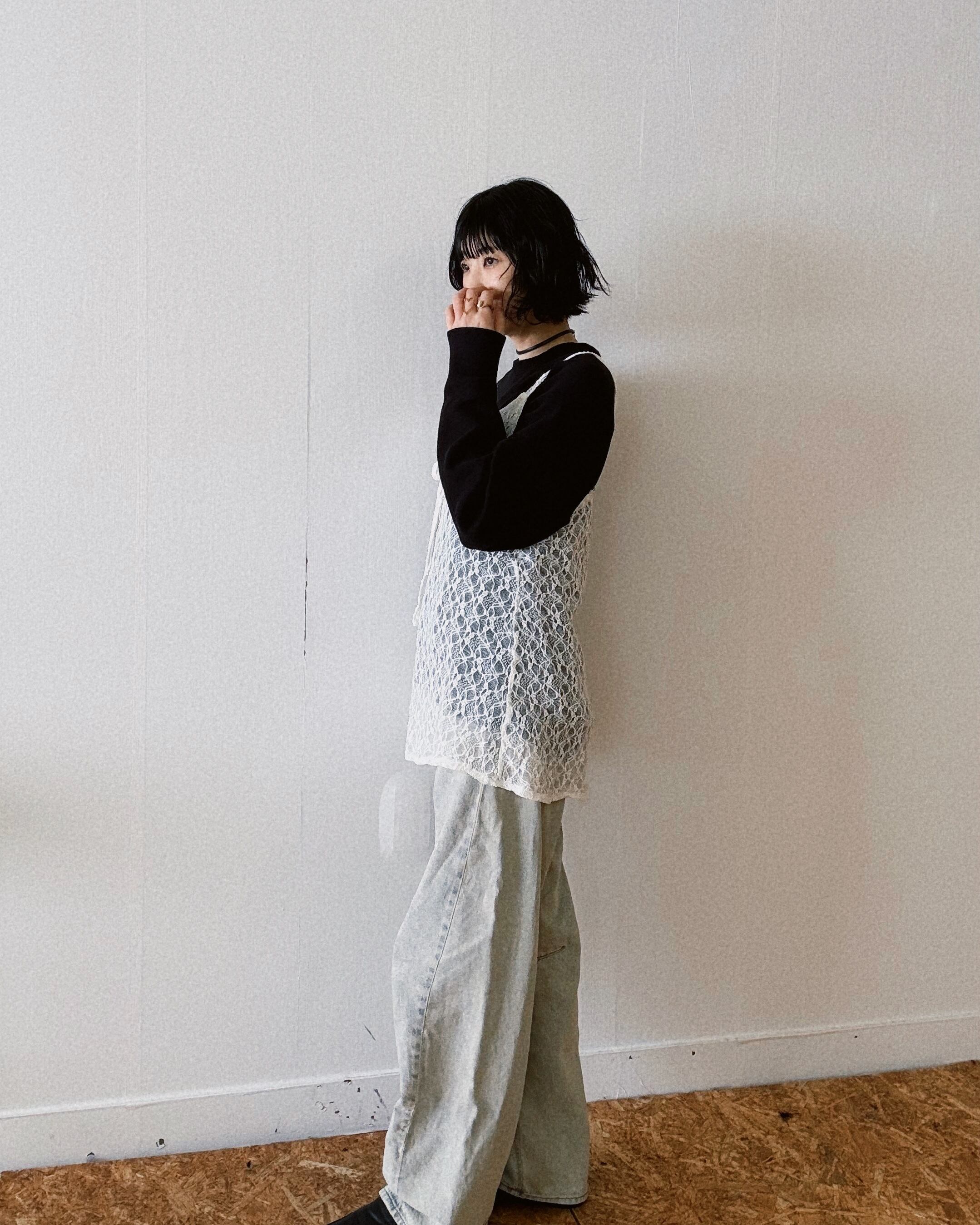 甘さのあるレース素材ですが、カジュアルにも取り入れやすく、スタイリングの幅が広がります。