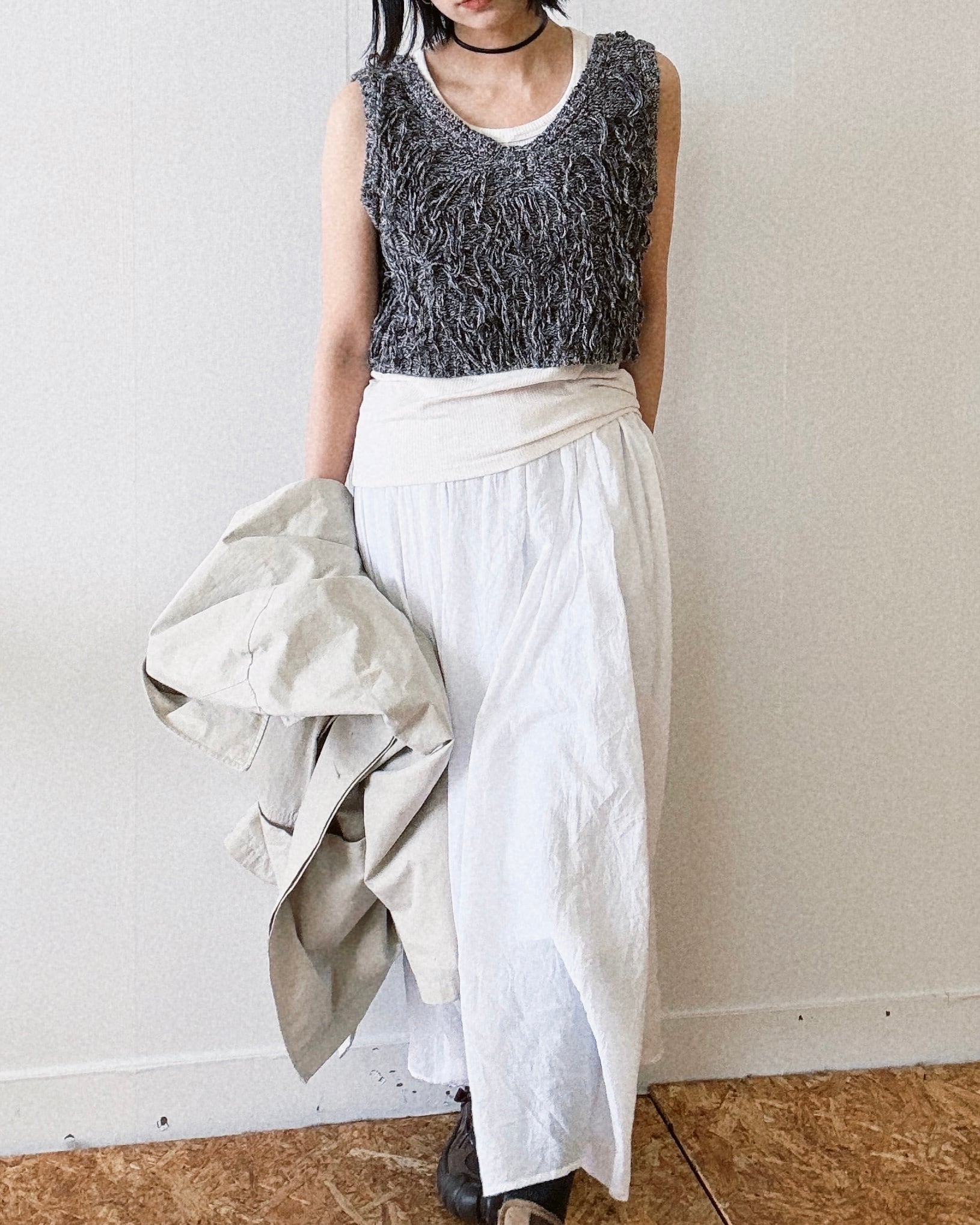 ほどよくゆとりのあるサイズ感で、Tシャツやシャツ、ワンピースまで幅広くレイヤードが可能。