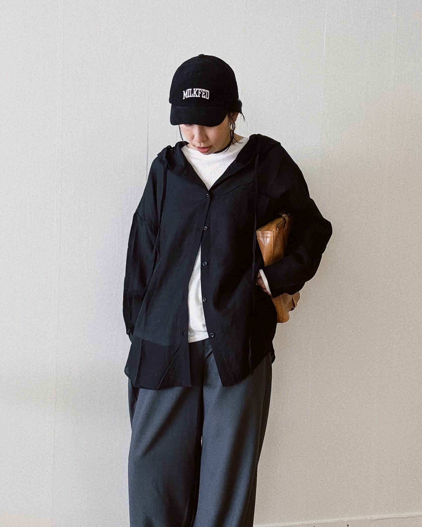シンプルながらもカジュアルなフードデザインで、いつものシャツスタイルに変化をプラスしてくれるのでシャツスタイルにマンネリ気味の方にもおすすめ○