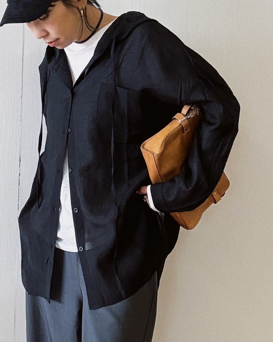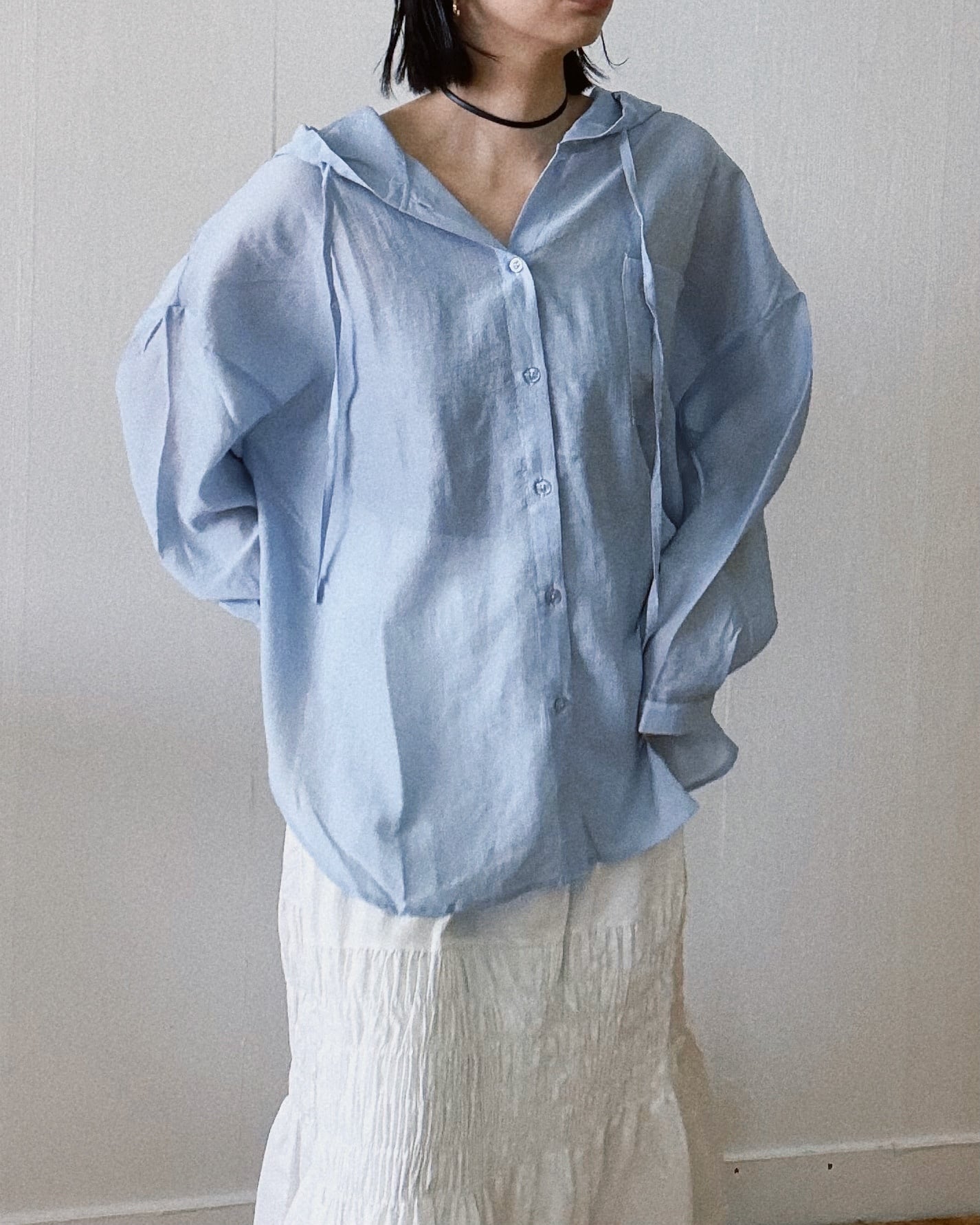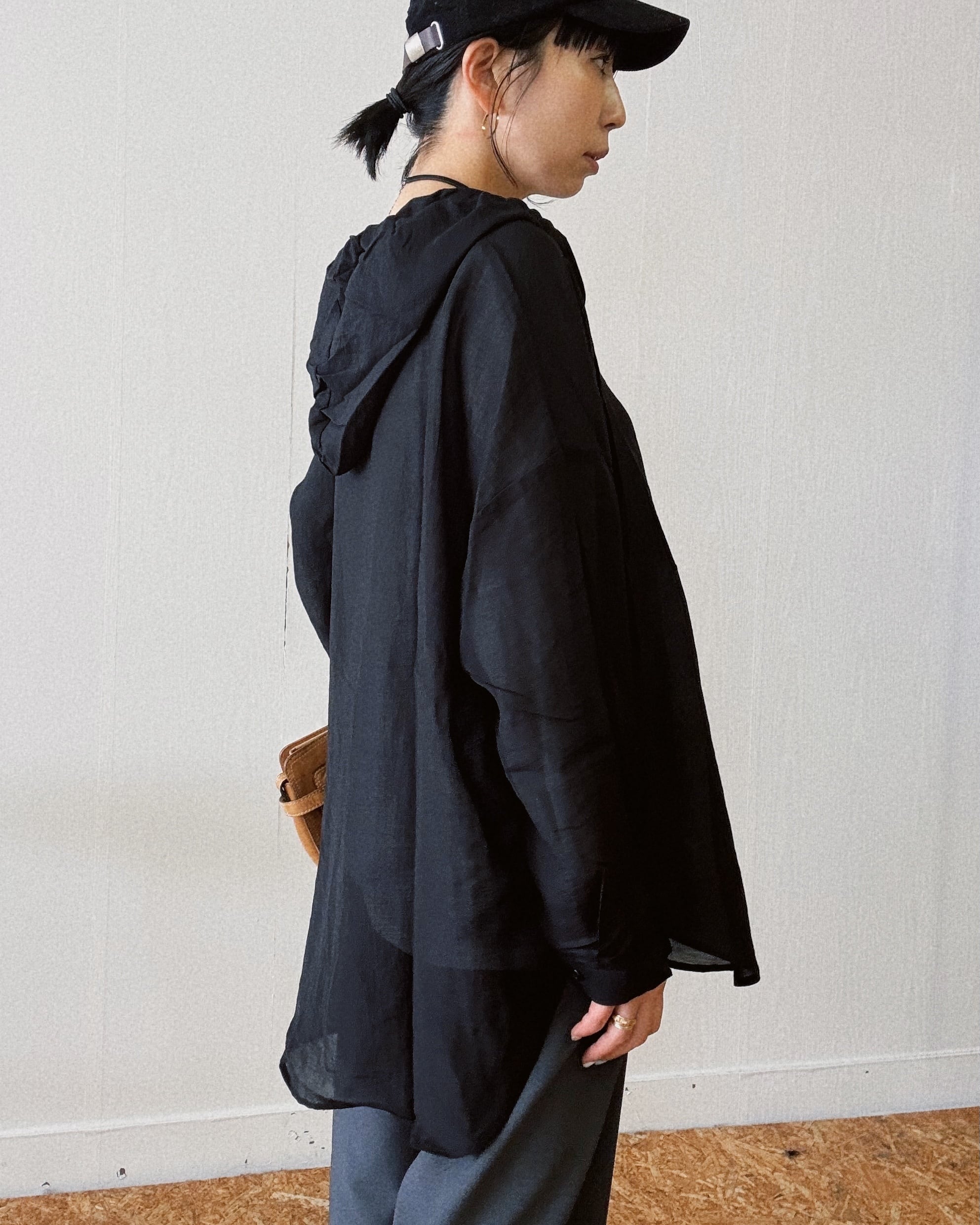 軽やかで落ち感のあるフード付きビッグシアーシャツ