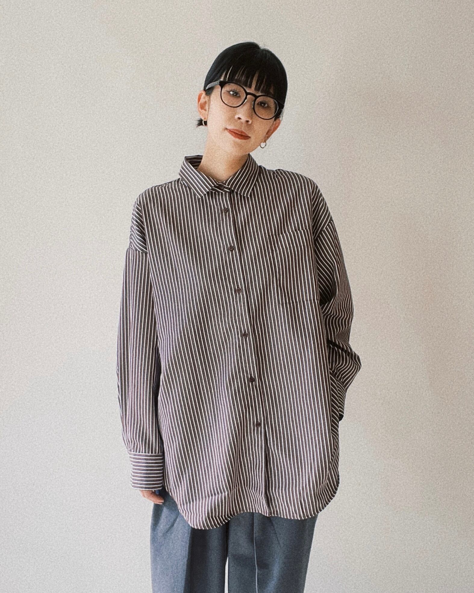 ゆったりしたサイズ感がメンズライクなストライプシャツ。