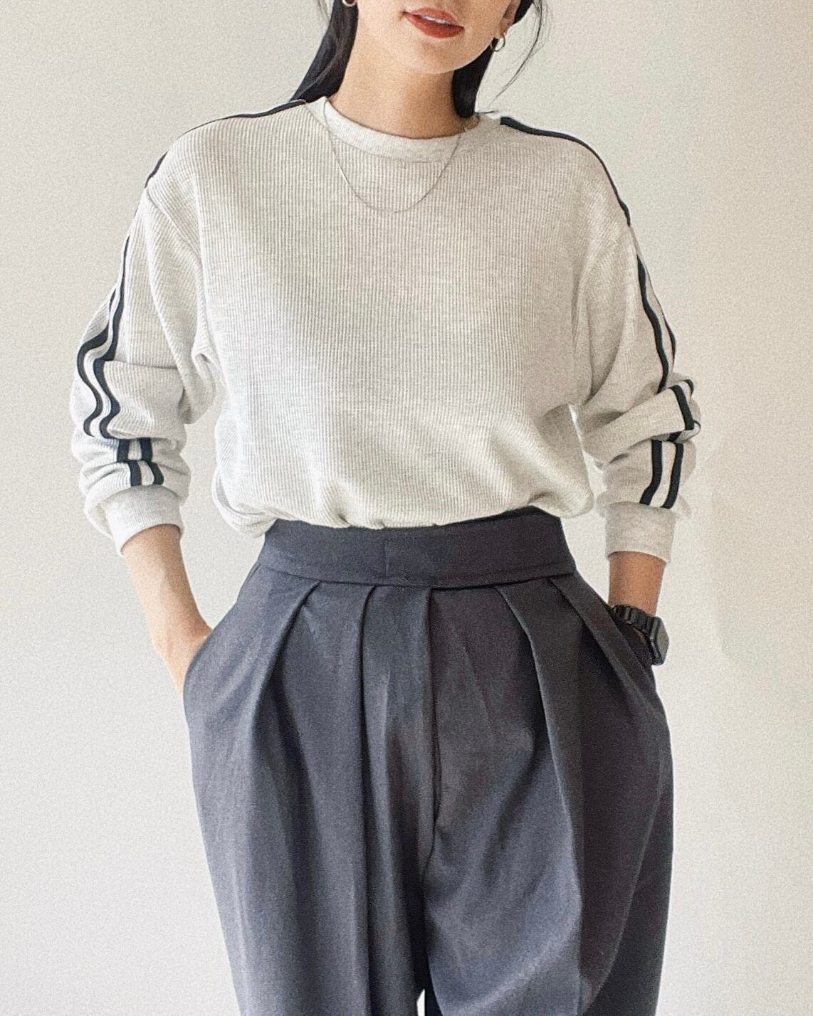 スウェット感覚で一枚着として、肌寒い季節にはインナーとしても活躍するアイテム。