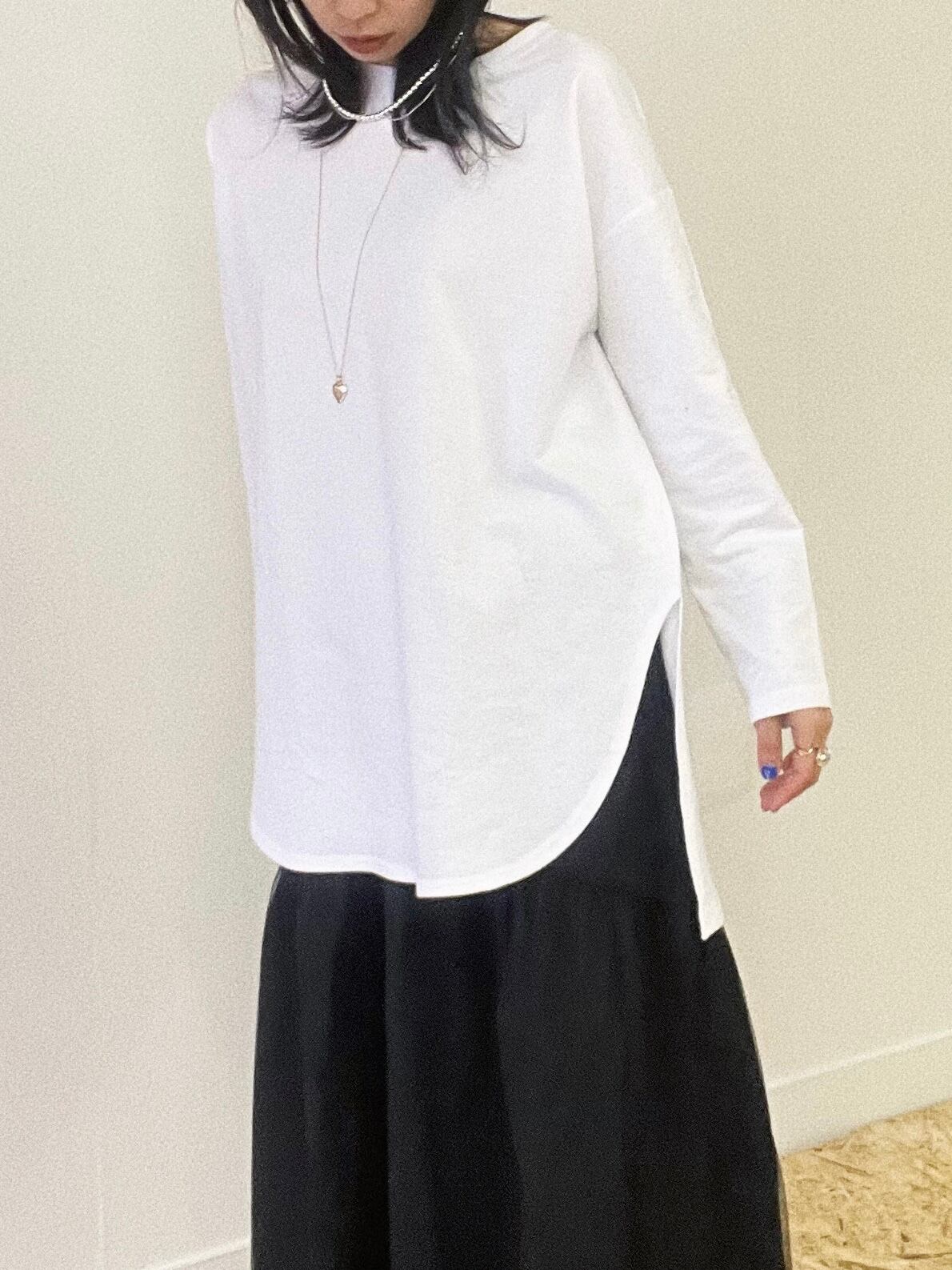 肌触りの良いコットン素材のサイドスリットロンT。
