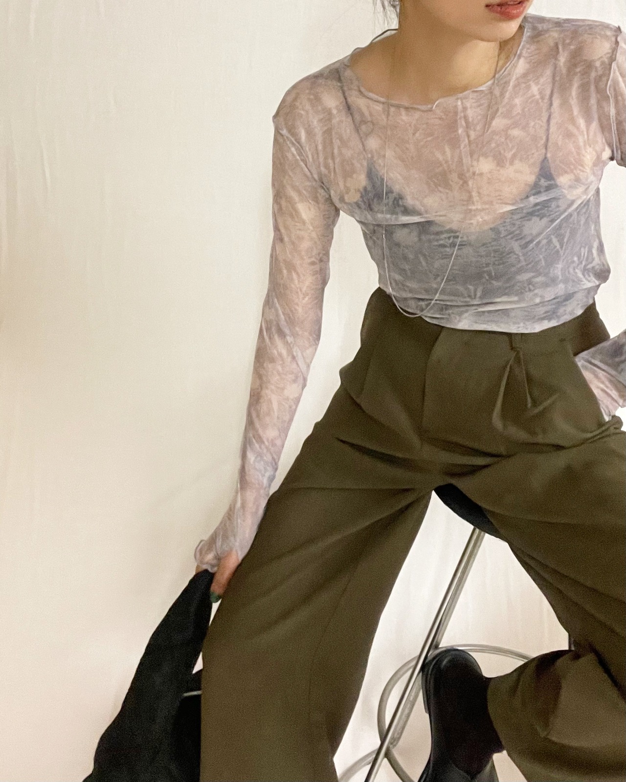 ニュアンスフラワープリントのシアートップス。