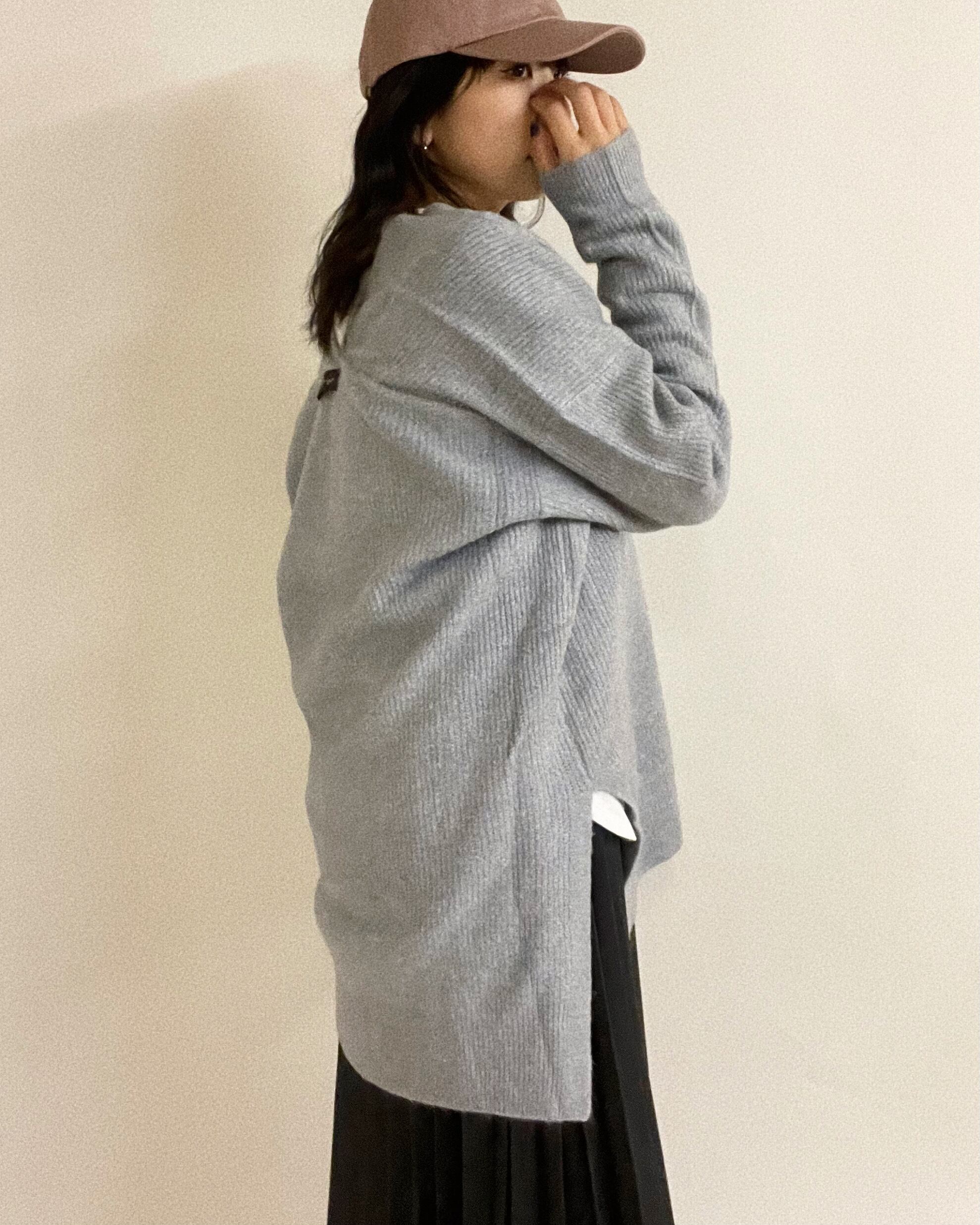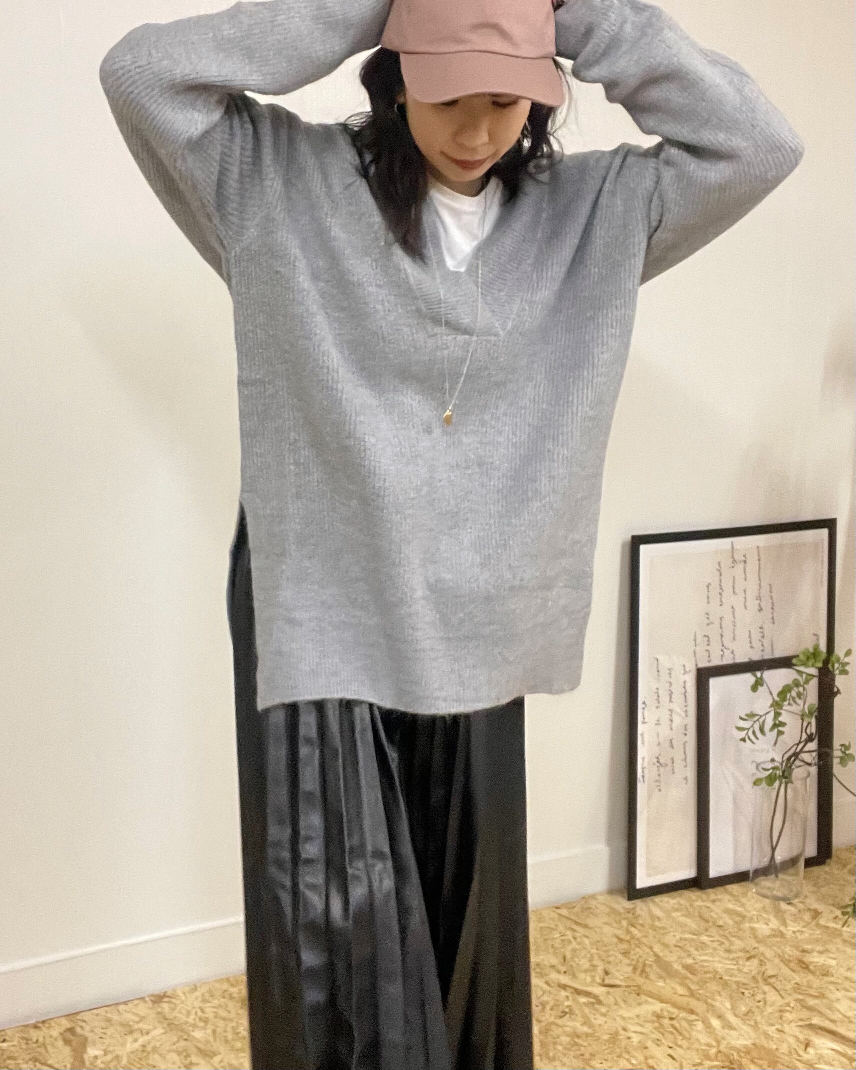 横スリットと前後差のあるシルエットでゆるっときれるゆったりとしたVネックニット。
