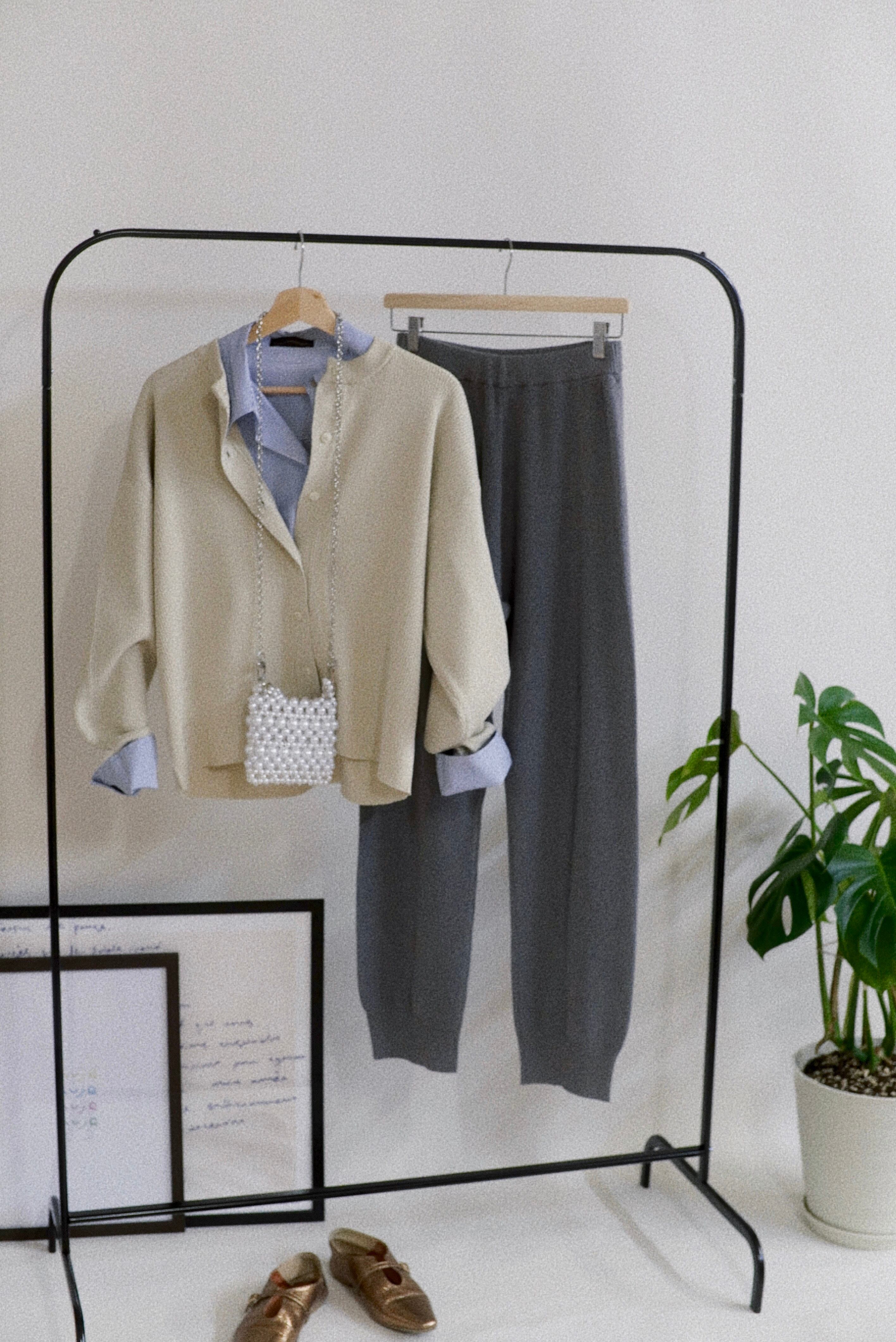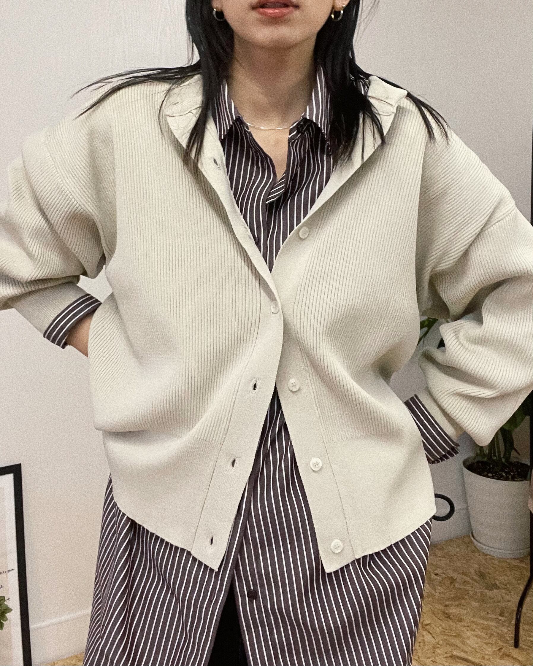 シワになりにくく、イージーケアで着回しやすいリブカーディガン。