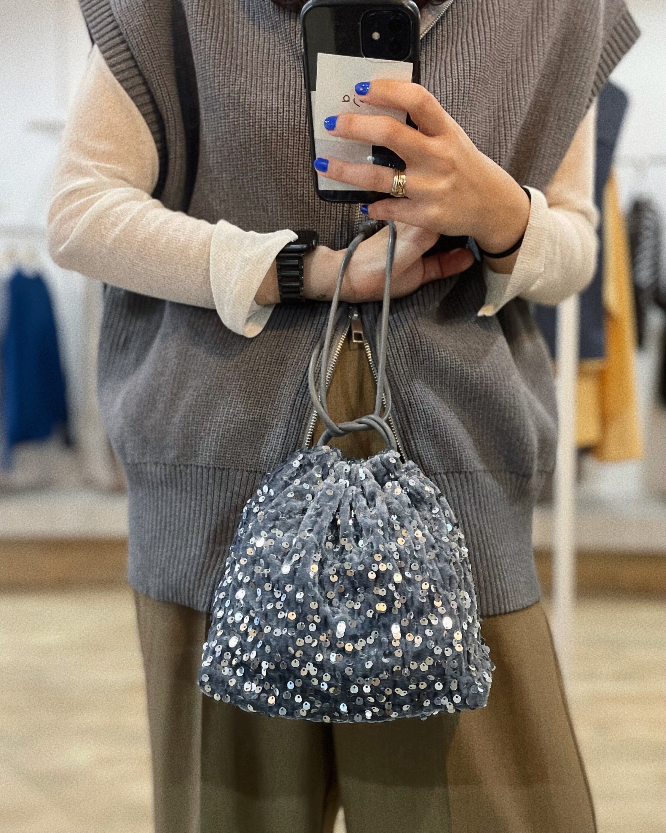 ころんとしたシルエットがかわいいトレンドのスパンコールミニバッグ。