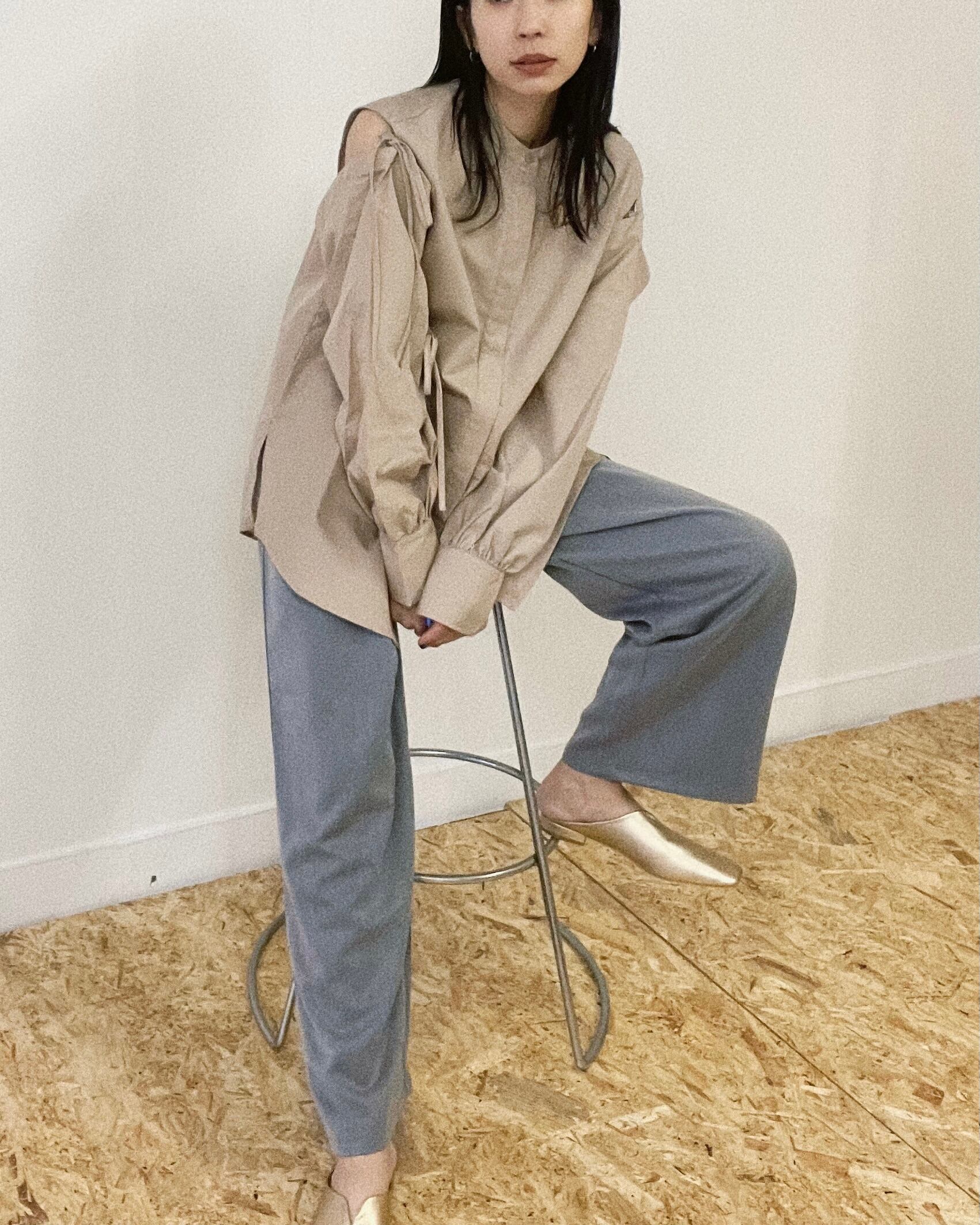 ショート丈のトップスや、Tシャツを中に入れてウエスト部分をちらっとみせてあげると今年らしいトレンドスタイルになります