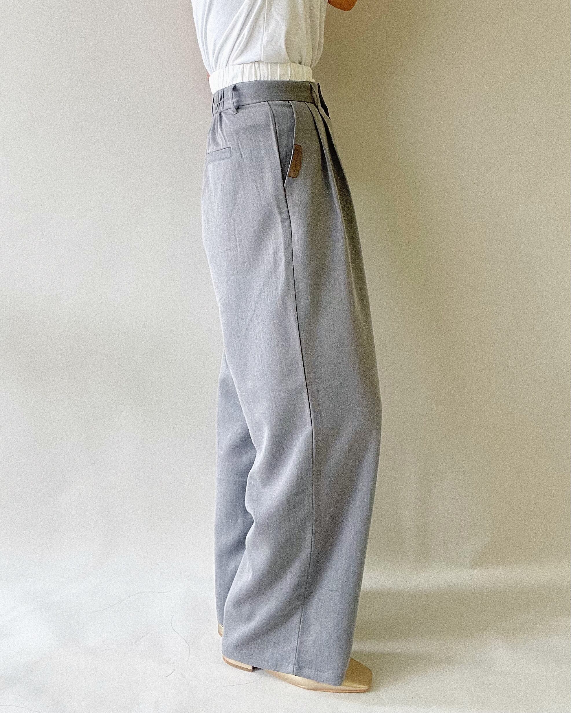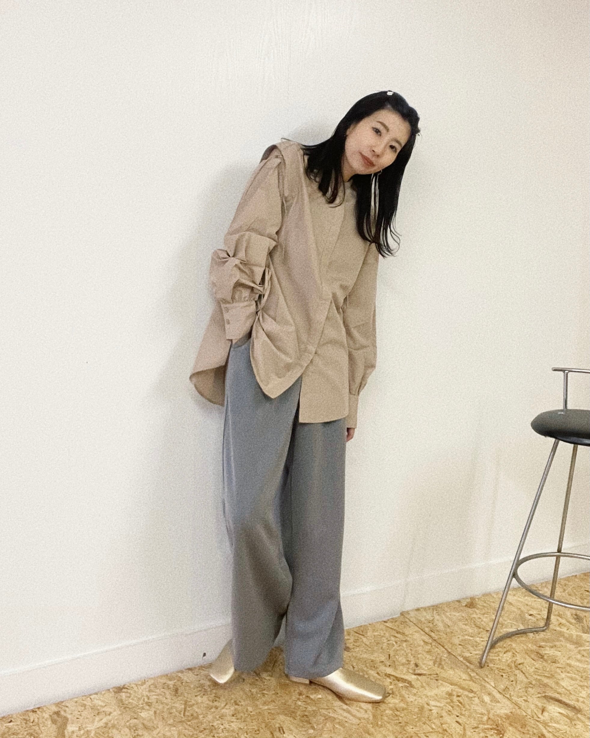 ウエスト部分の別布パーツがポイントのレイヤード風パンツ。