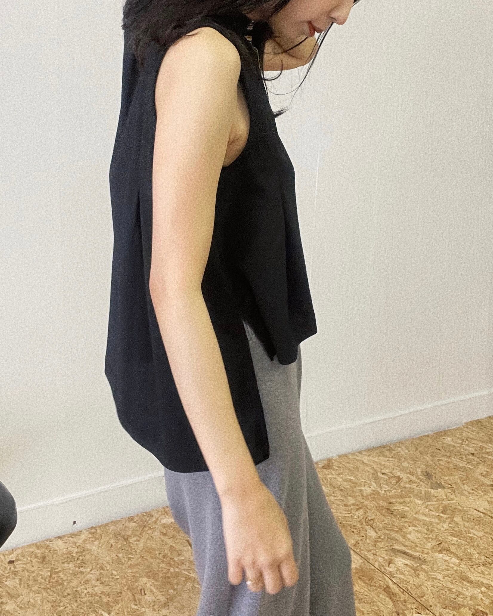 前後差パイルタックショルダーノースリ