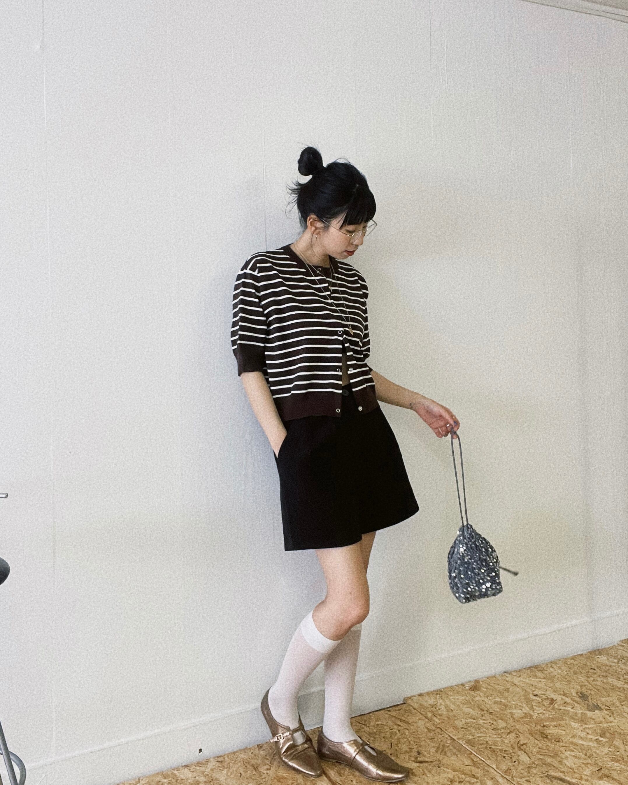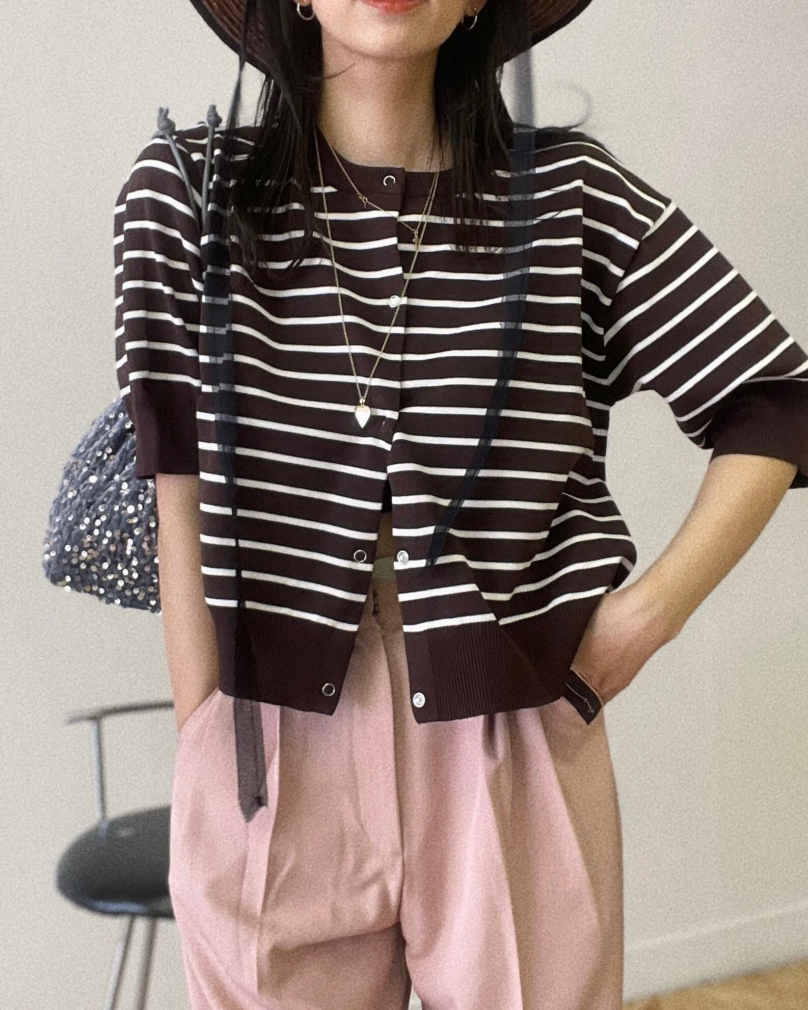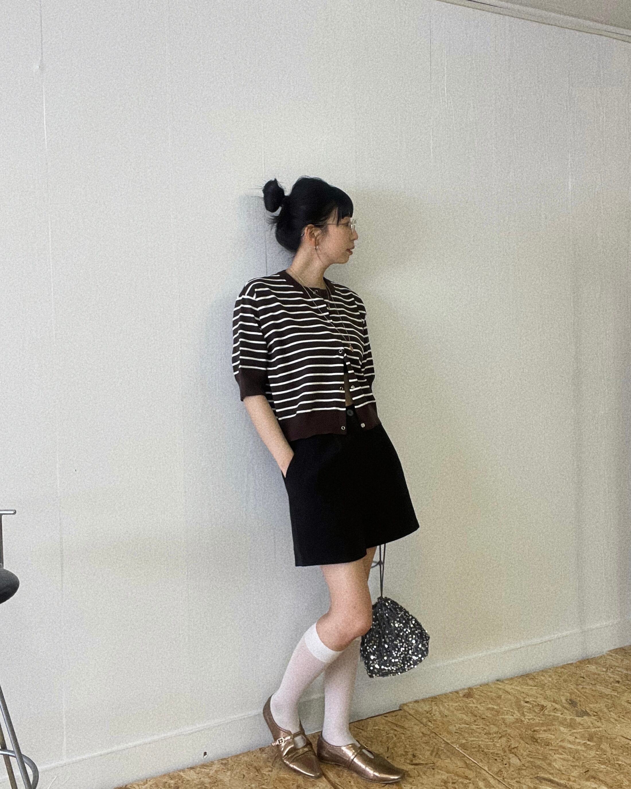 軽量でモチモチとした肌触りの良い素材とクロップド丈でデイリー使いしやすい半袖カーディガン。