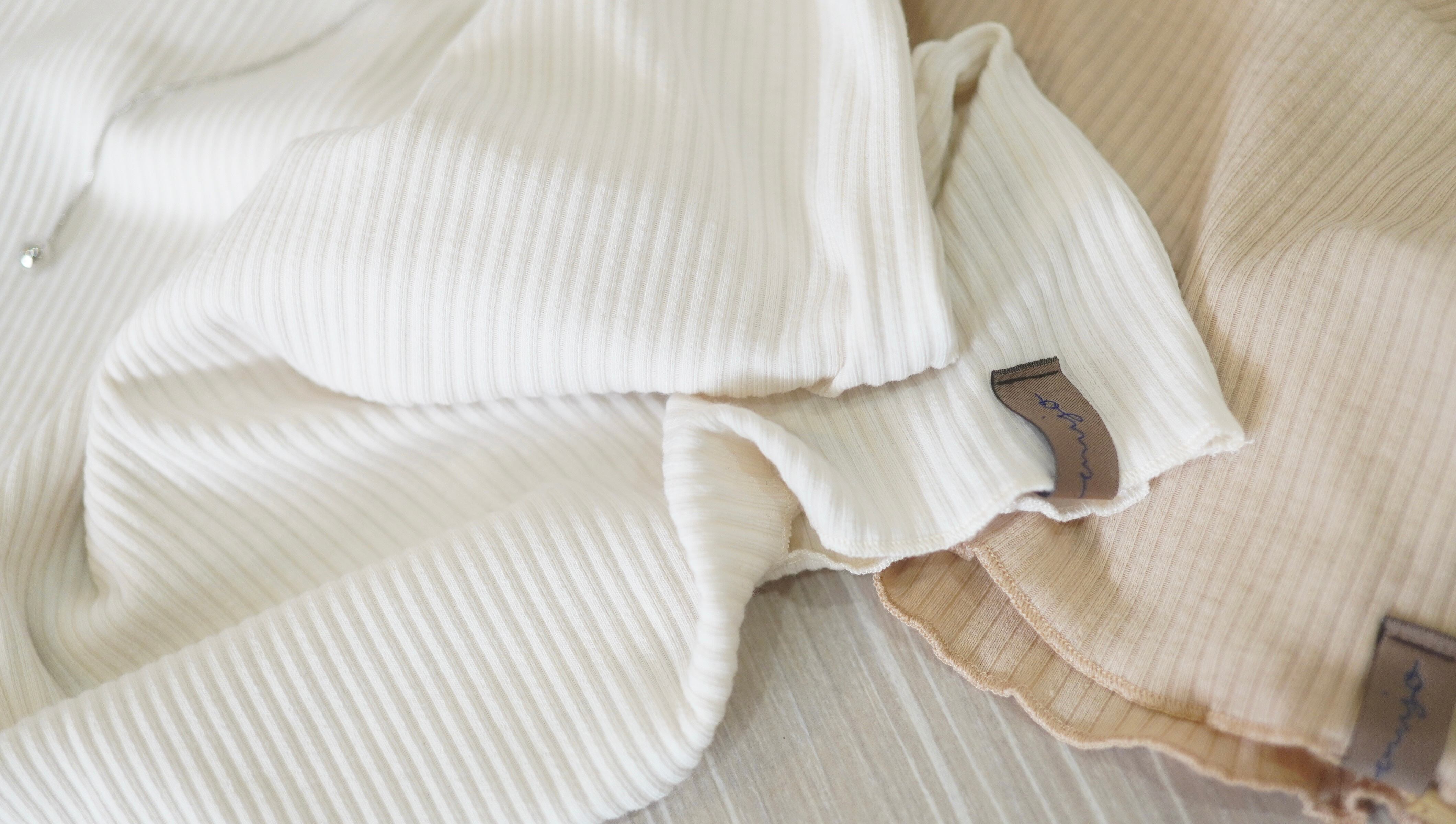 やわらかな中肉な細リブ素材で程よいフィット感がありながら、締め付け感が無いので着心地よく着用できます。