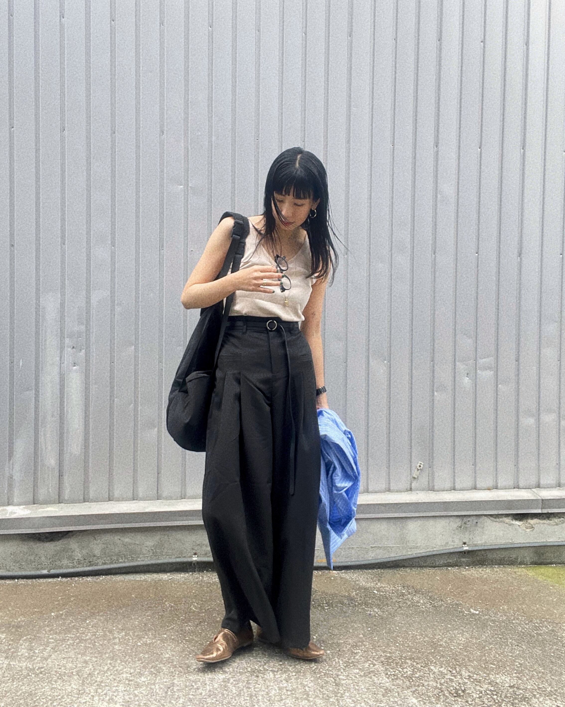 パンツを活かしたウエストインしたスタイルもおすすめ。