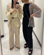オーバーサイズですが、程よいシアー素材なのでスタイリングも涼しげにみせてくれます。
