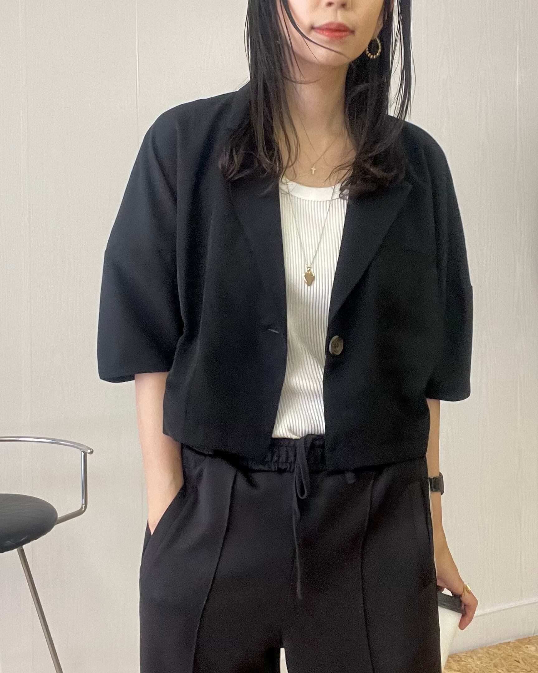 ハイウエストアイテムと相性抜群の春夏のショート丈ジャケット。