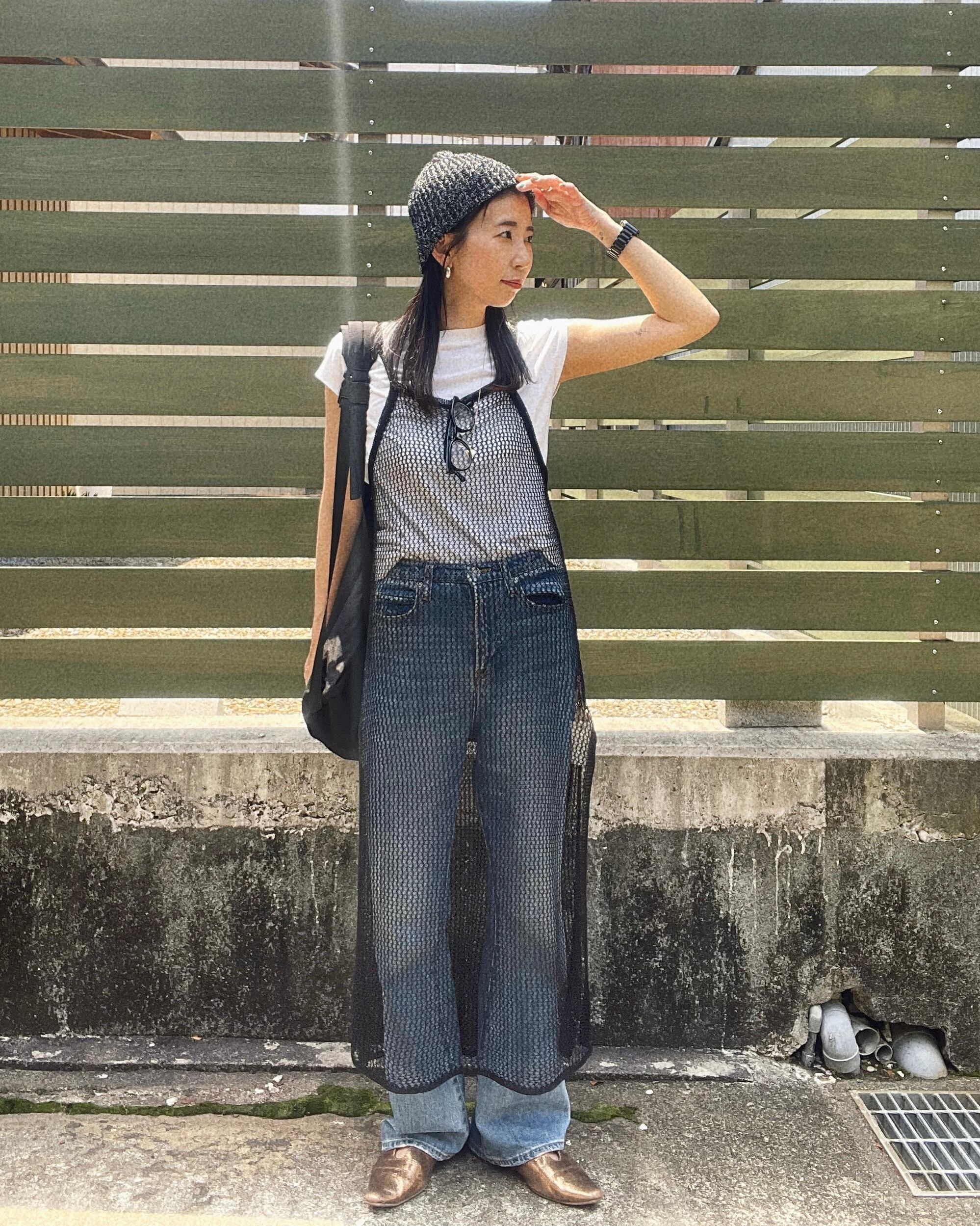 タンクトップやタイトめなインナーを合わせてきれいめに◎