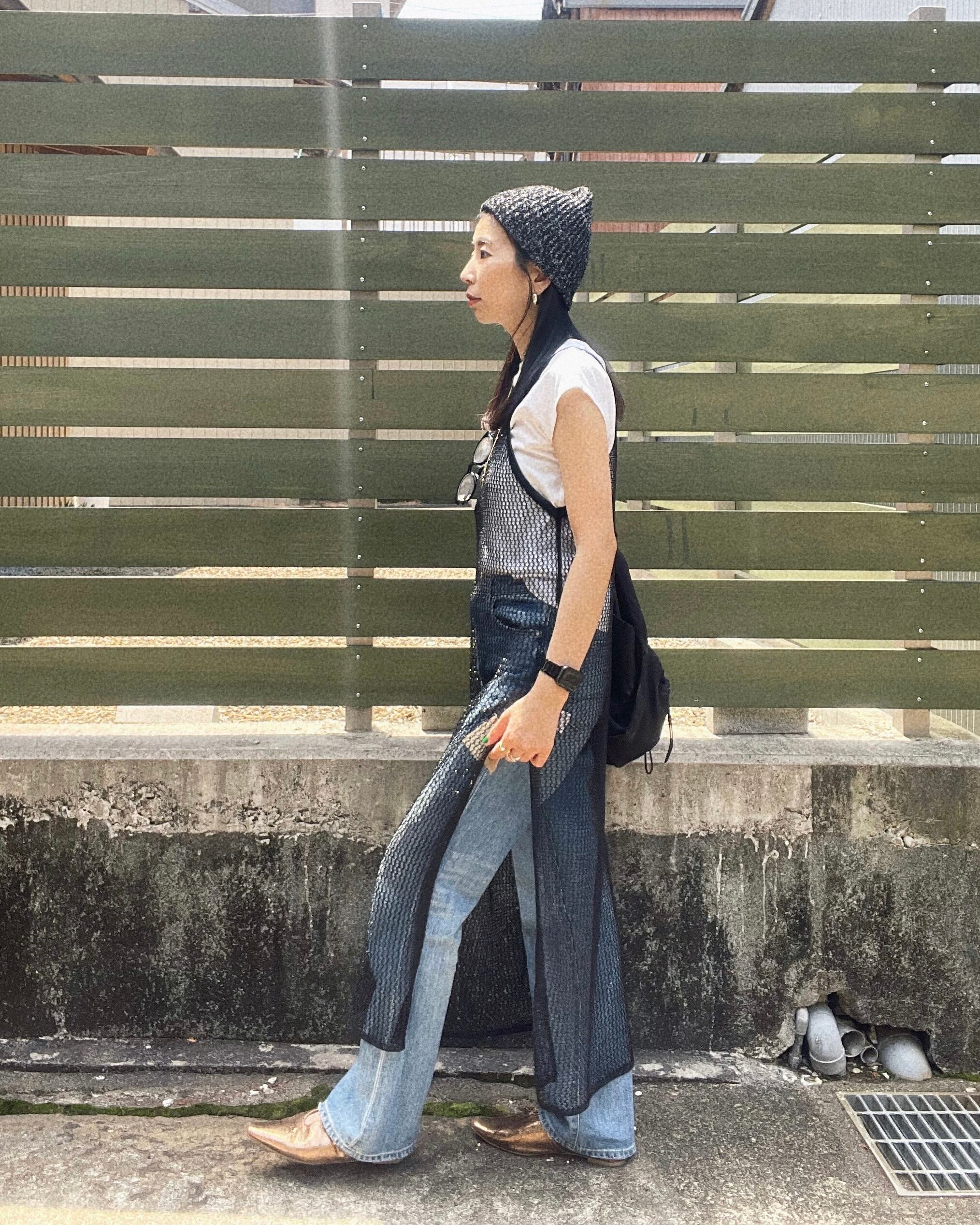 ざっくりとしたメッシュで抜け感と軽やかさがあります。両サイドにスリットが施されているので足さばきも◎