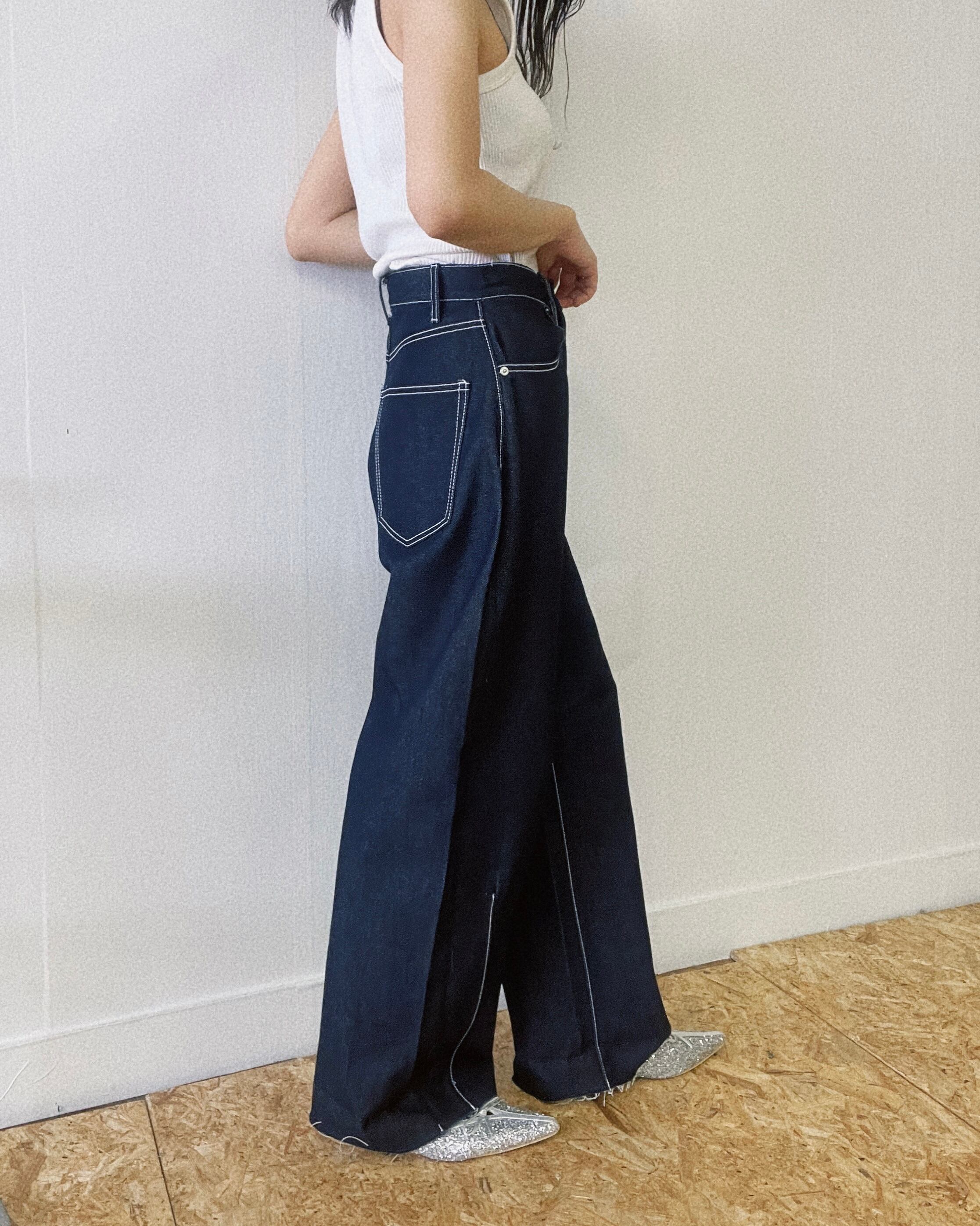 デザイン性のあるデニムなのでトップスはシンプルなもので合わせて頂くと、デニムのデザインが引き立ち、様になります◎