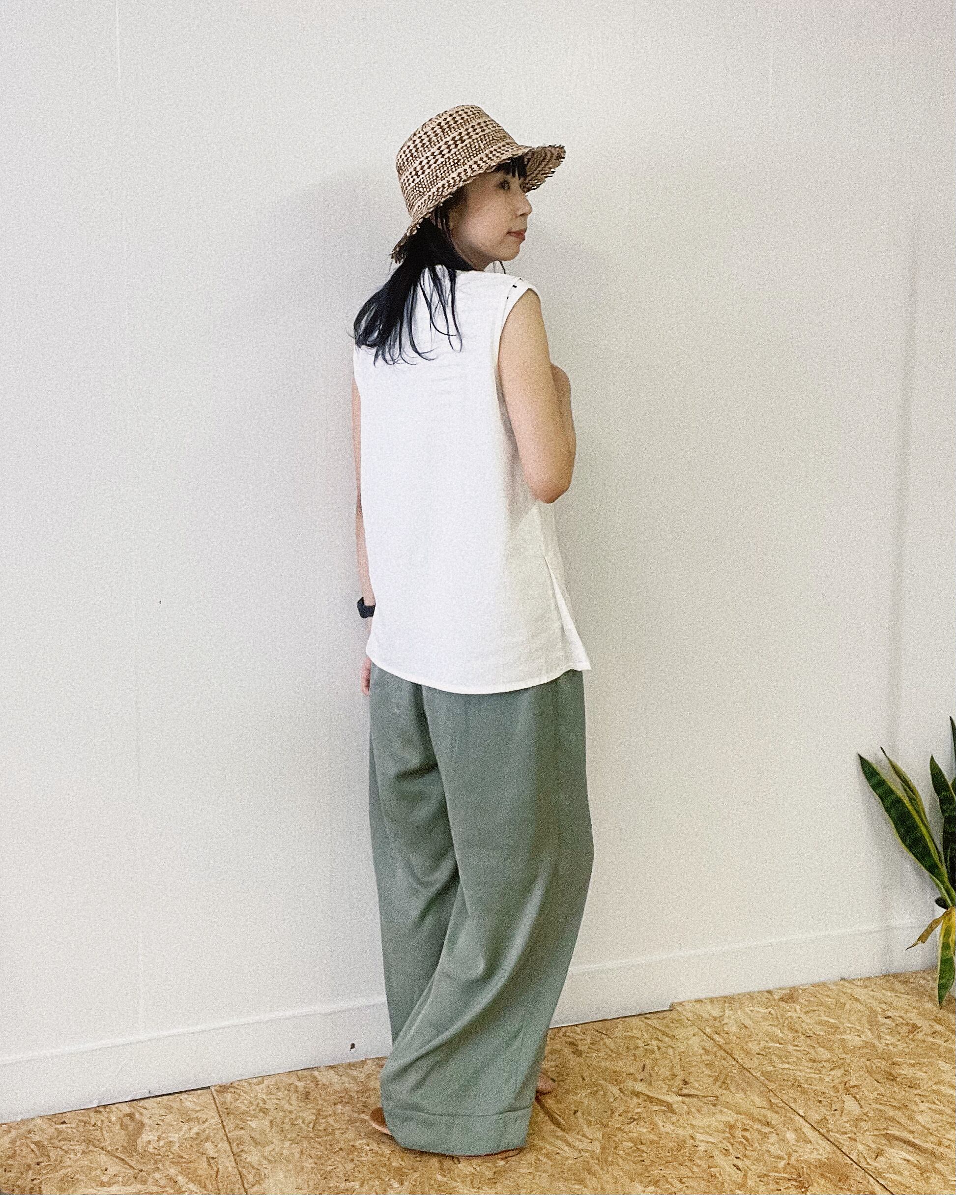 ゆったりしたスラックスやロングスカートと合わせると適度な抜け感が出て◎