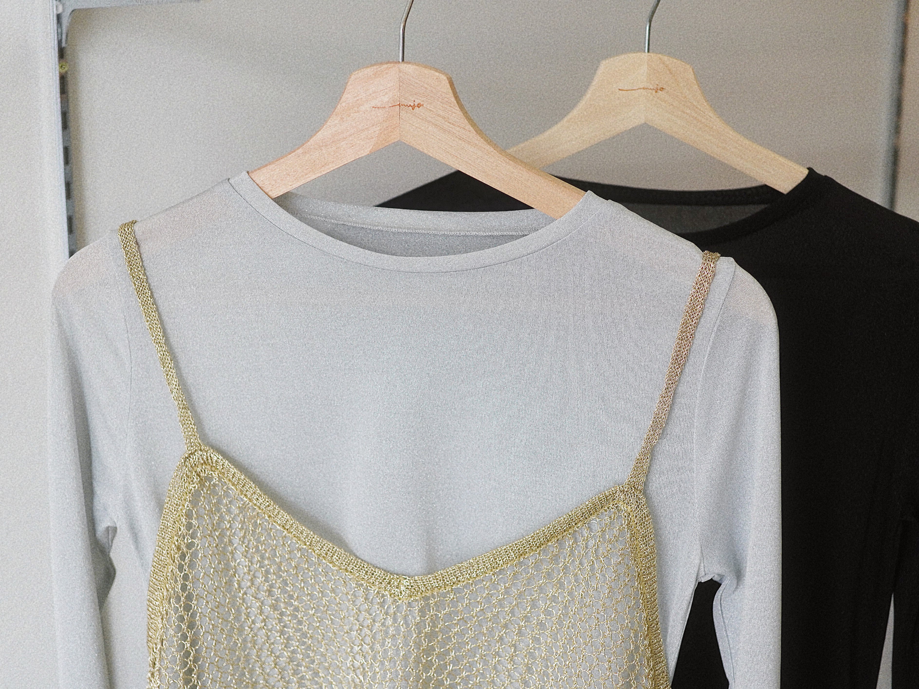 普段のスタイリングをラメカットソーに変えるだけで、こなれた印象にレベルアップしてくれます。