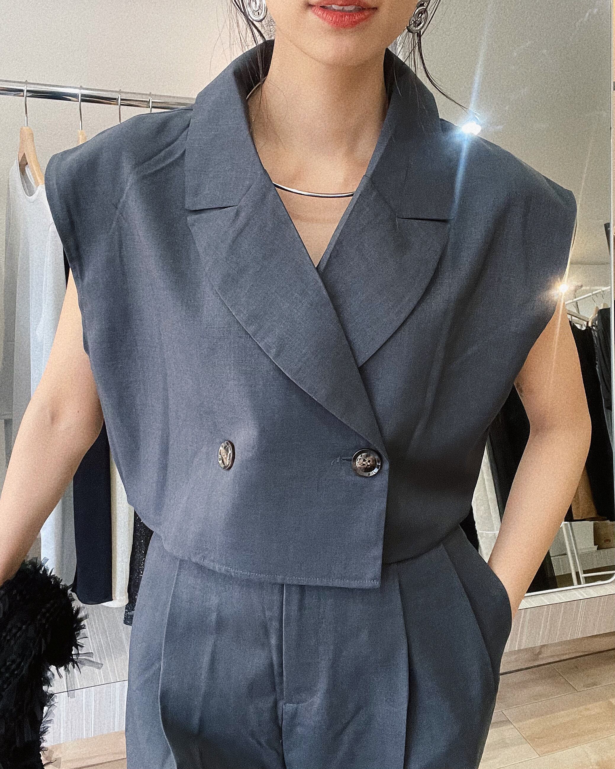 同生地のパンツとセットアップでご着用いただけます(チャコールのみ)