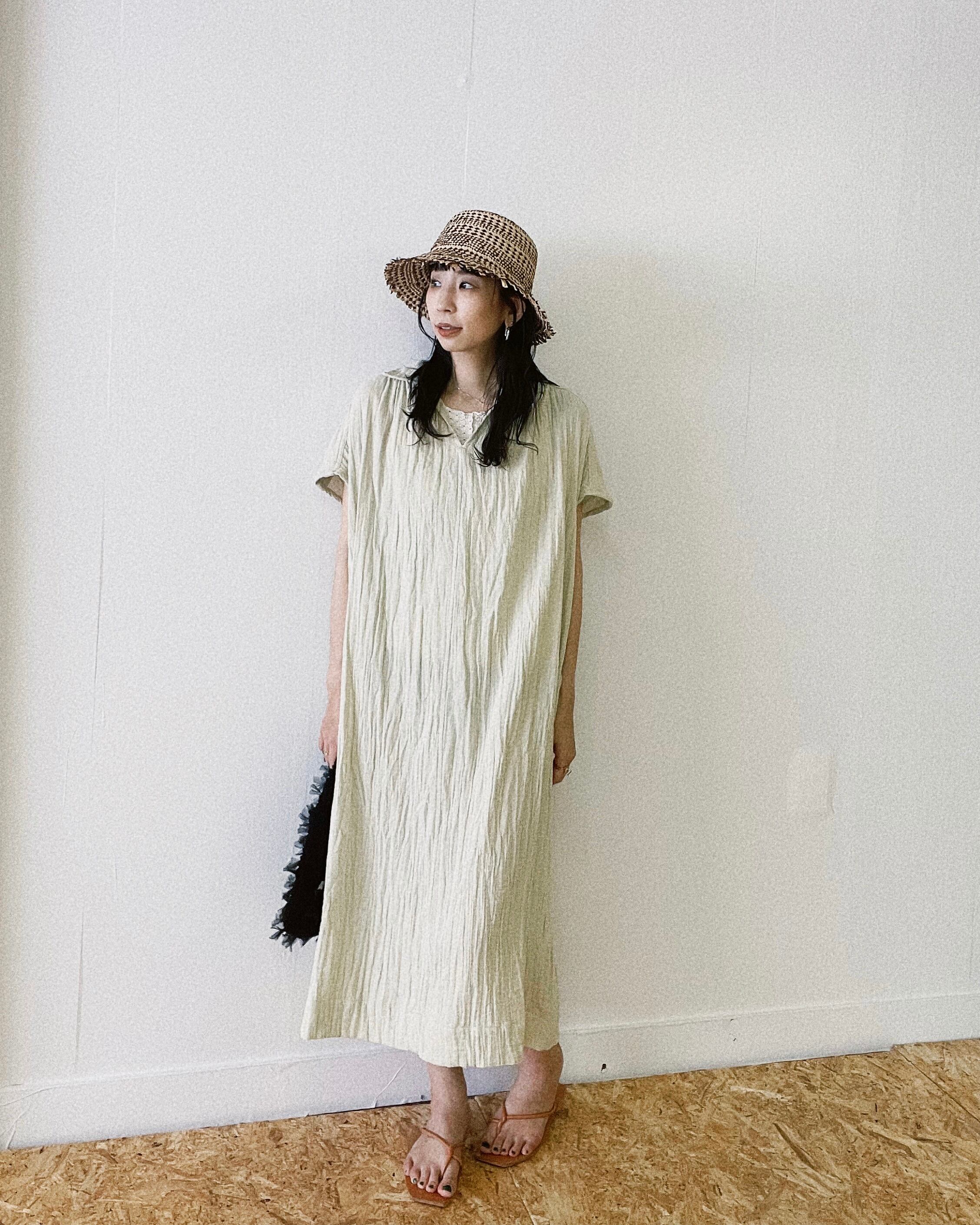 見た目にも清涼感があり、さらっと着れるのでリゾートシーンにもおすすめです。