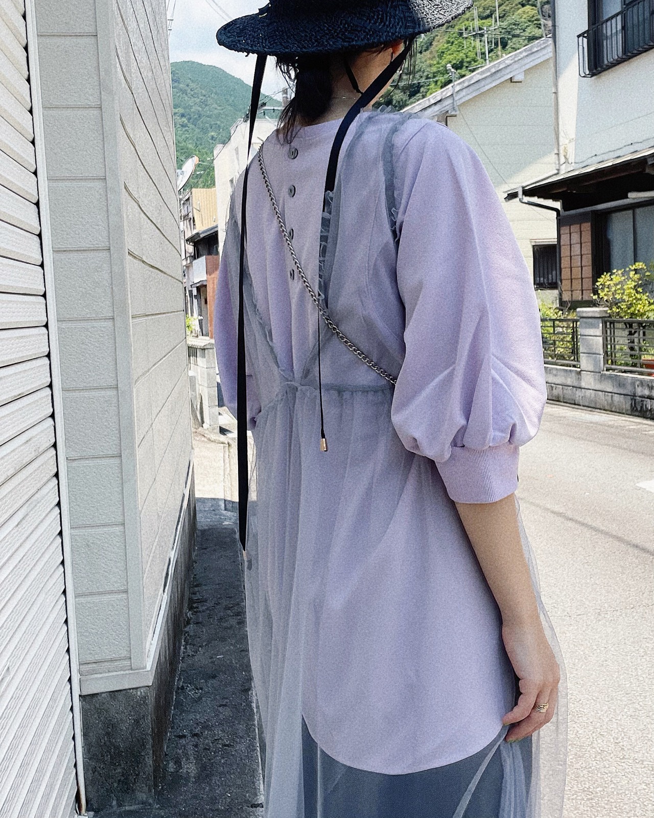 ふんわりとさりげないボリューム袖や裾のラウンドカットで、ボトムスを選ばず着回しの効く一枚です。