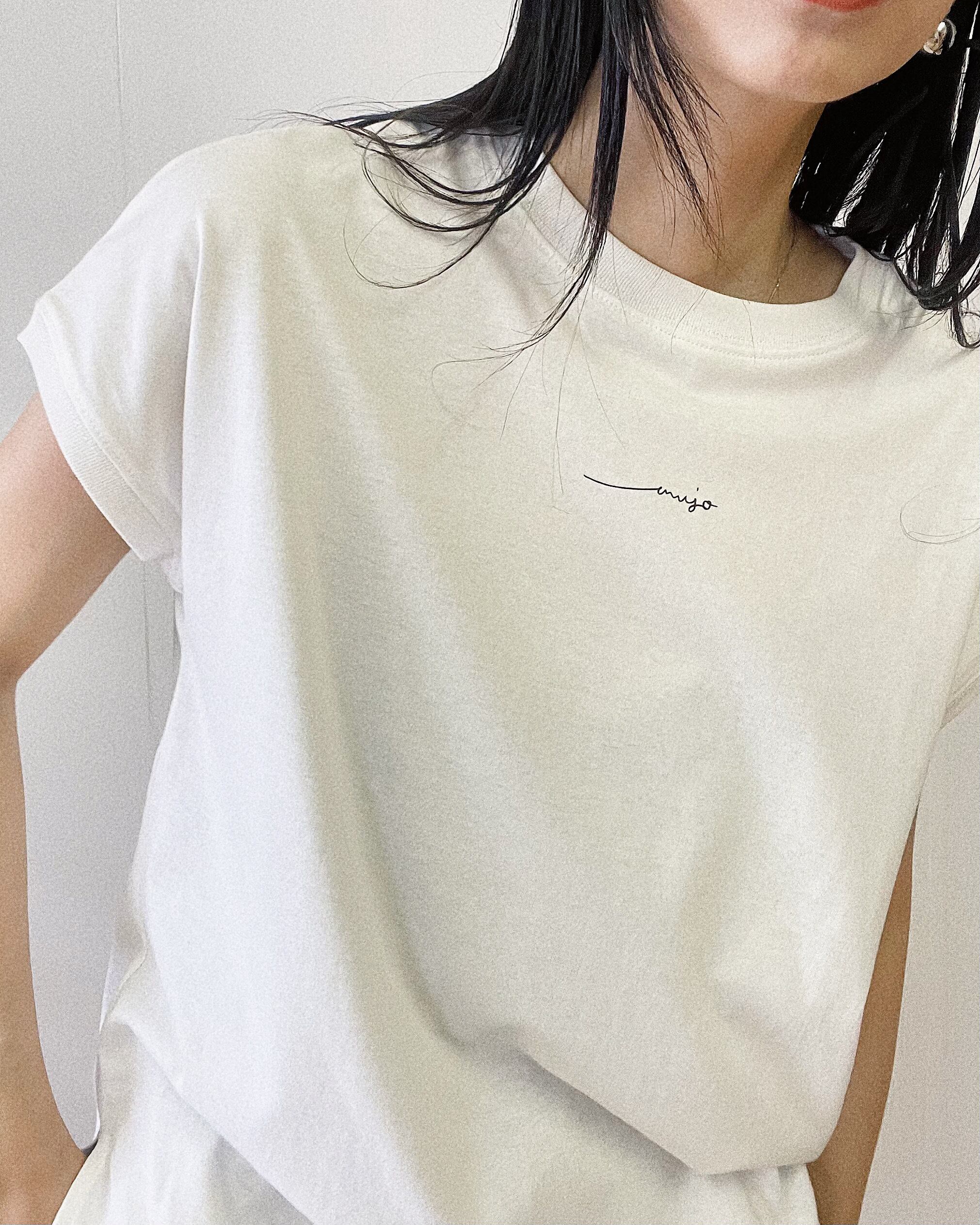 主張しすぎないさりげないロゴデザインなのでチュールワンピースやサロペットのインナー使いとしても◎