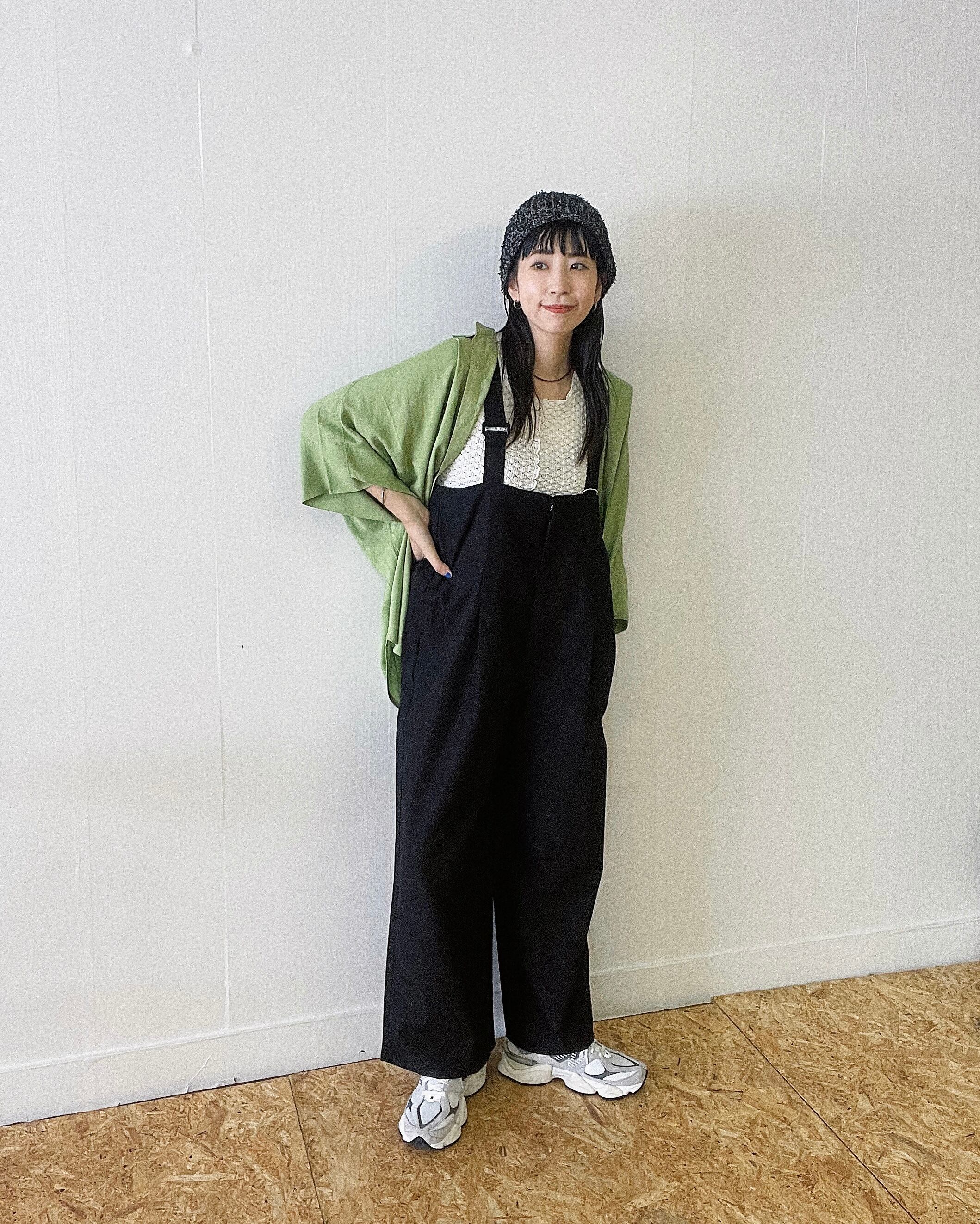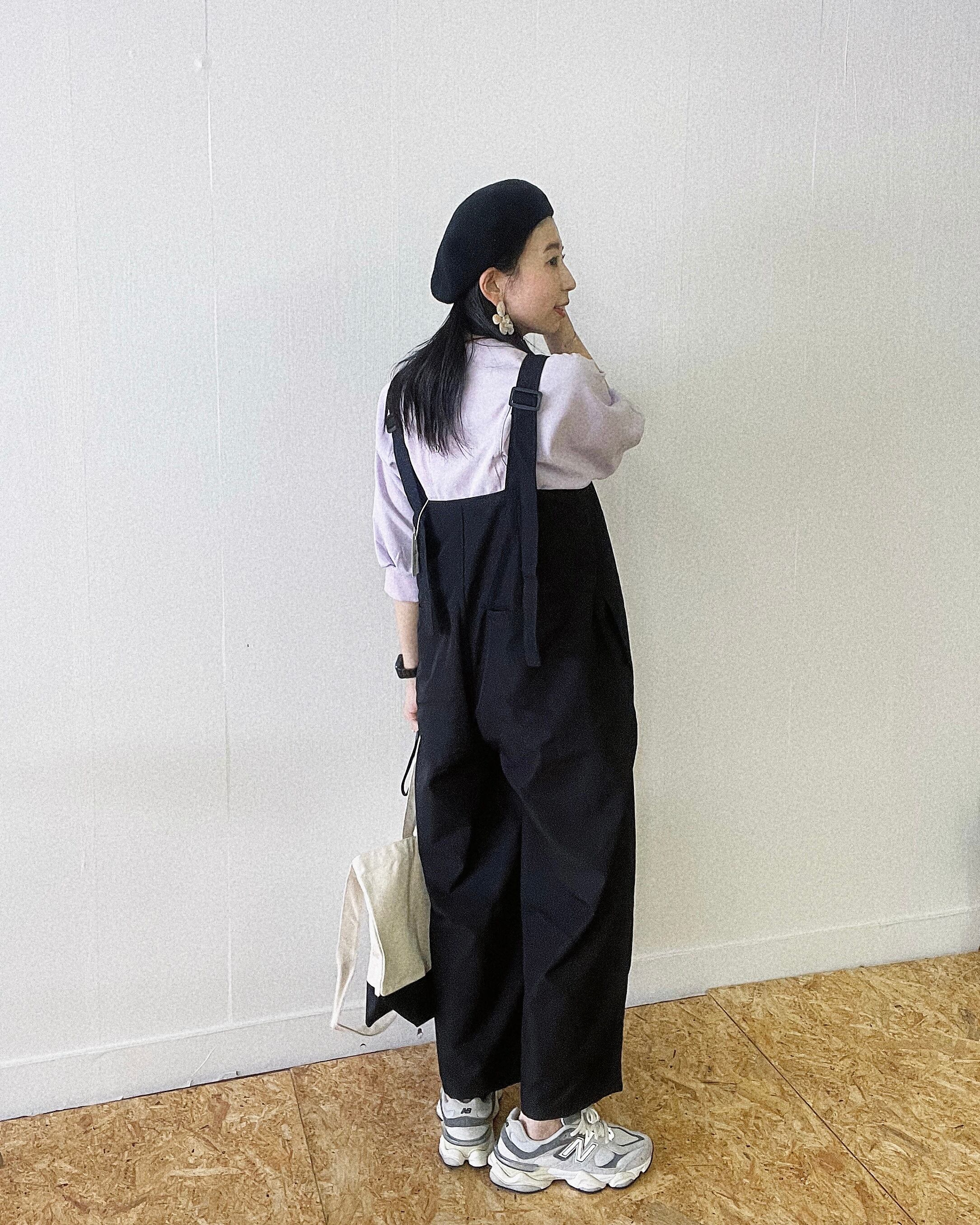 きれいめな印象のタックとワイドめなサスペンダーのディティールで、女性らしさを演出してくれるサスペンダートラウザー。