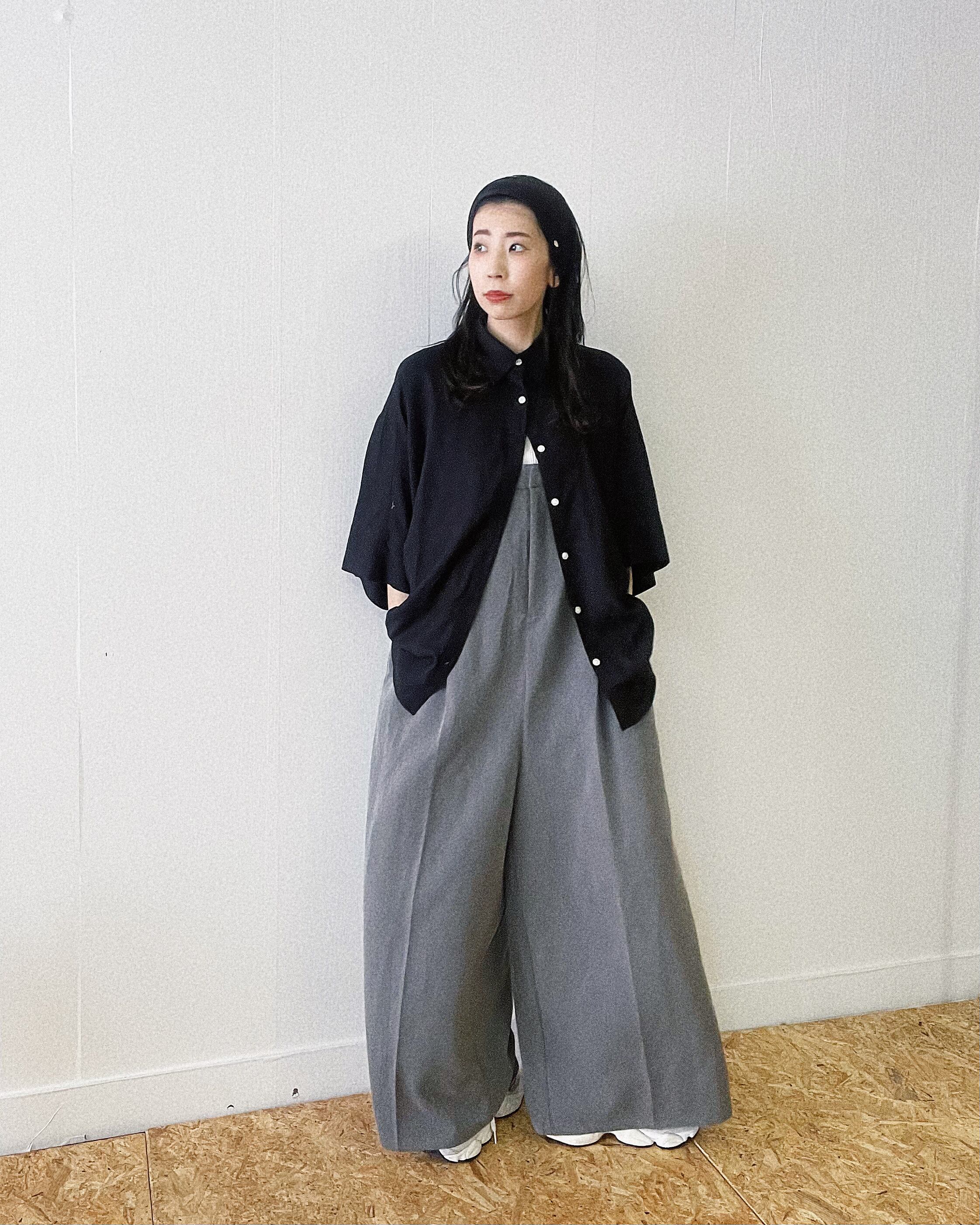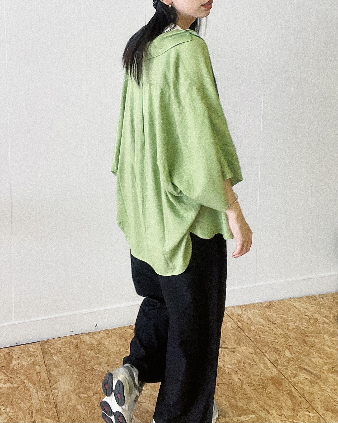 テロっとした素材感と、落ち感のあるデザインが女性らしく着用できる一枚。