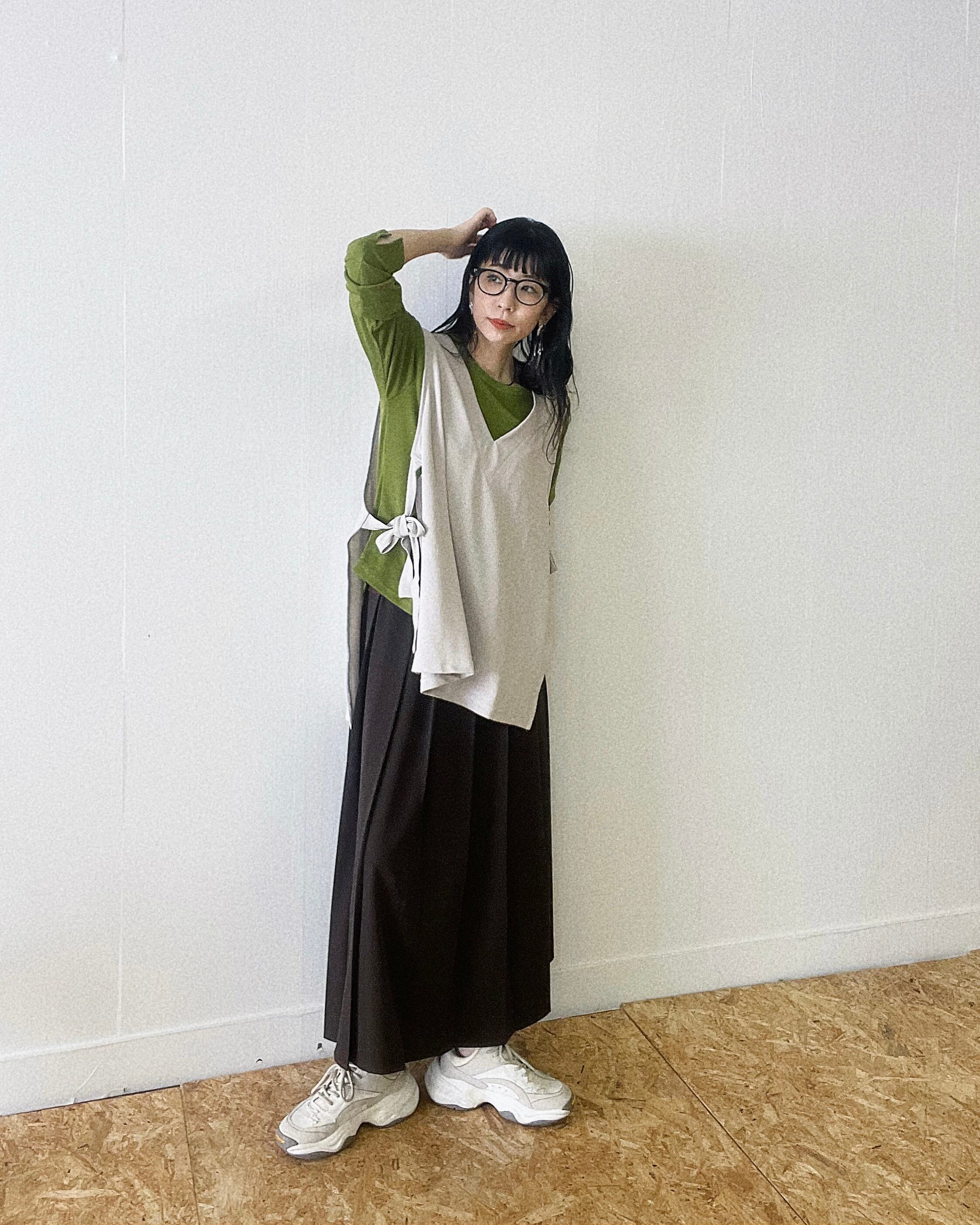 ニットに重ねても可愛いレイヤードを楽しめるオープンサイドベスト。