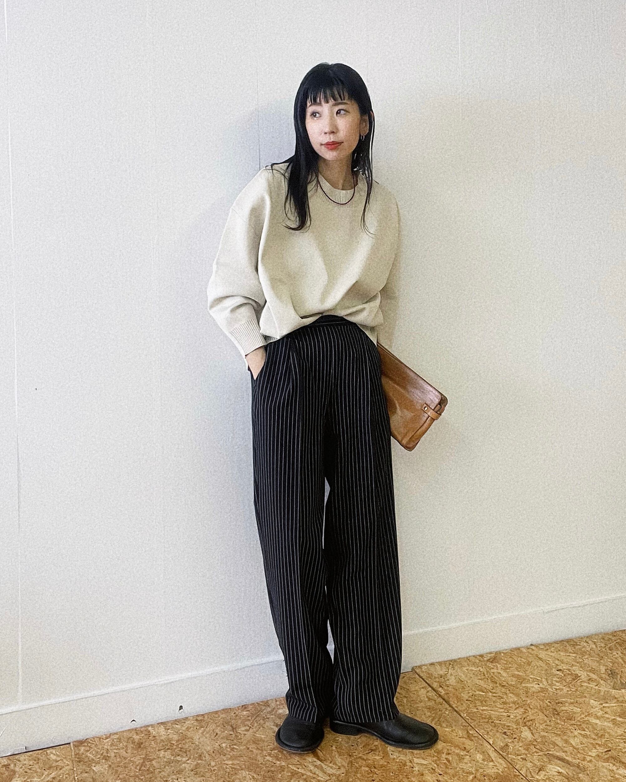 シンプルでベーシックなシルエットのニットで、毛玉も気にせずデイリー使いにピッタリな一枚です。